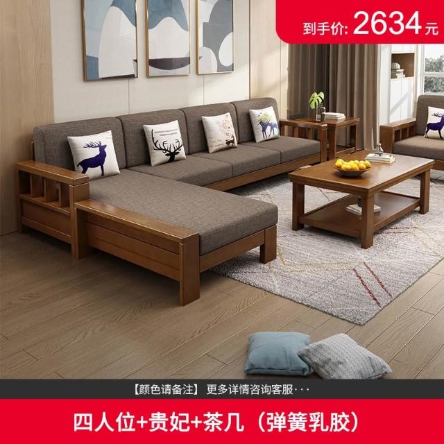廠家直銷 現代簡約 實木沙發 組合橡膠木 客廳小戶型木沙發 貴妃沙發 L型沙發