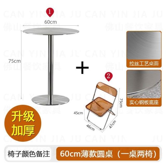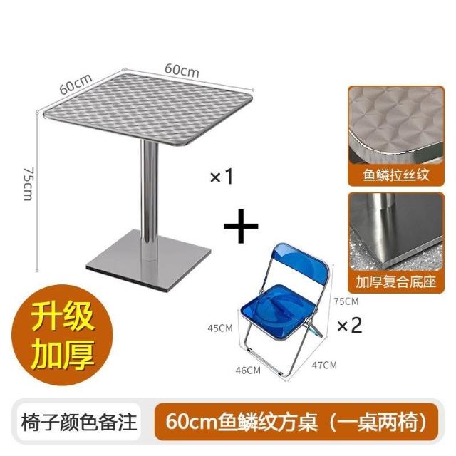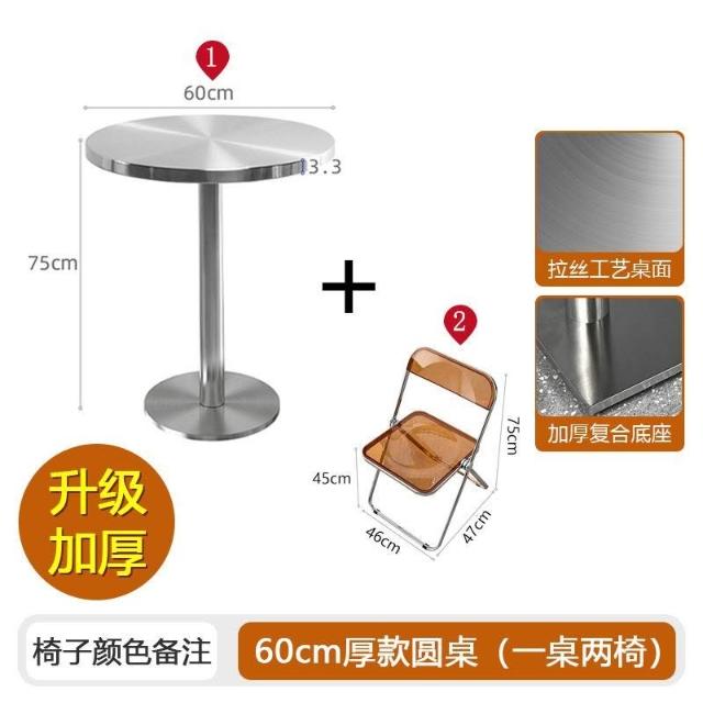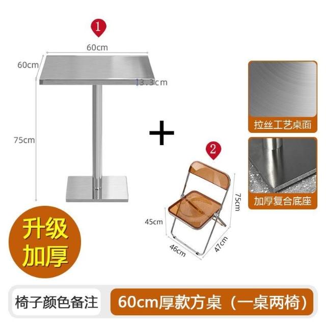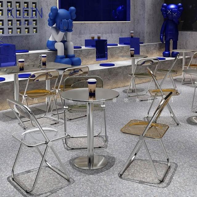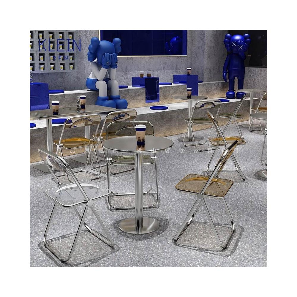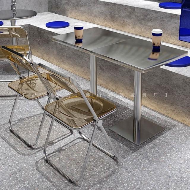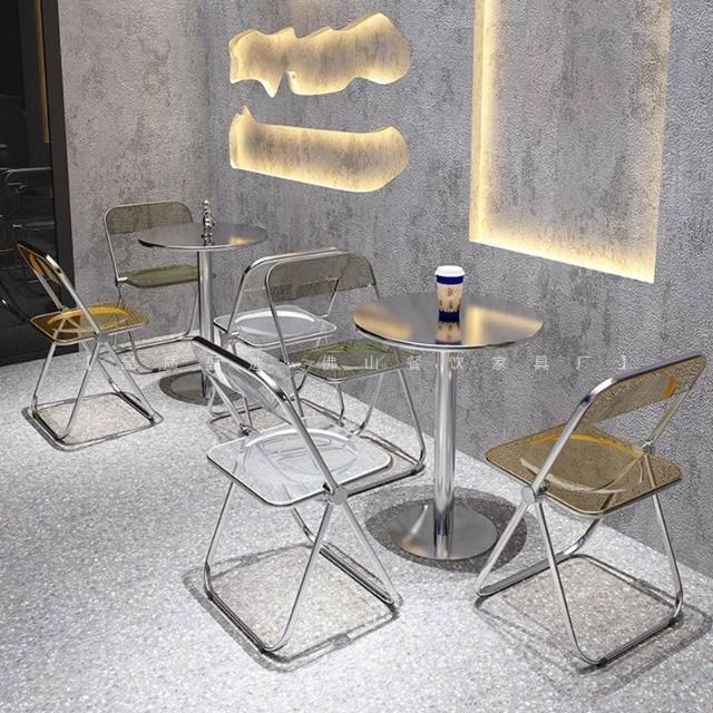 不鏽鋼桌椅 不鏽鋼餐桌 餐飲店桌椅 網紅咖啡廳奶茶店甜品小喫桌椅組閤ins工業風不銹鋼折疊亞剋力椅
