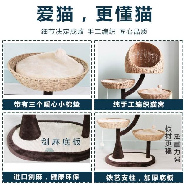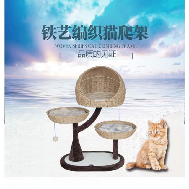 現貨 熱賣⭐貓咪吊籃藤編貓爬架藤編吊床籠子掛式貓籠編織房子用品狗窩劍