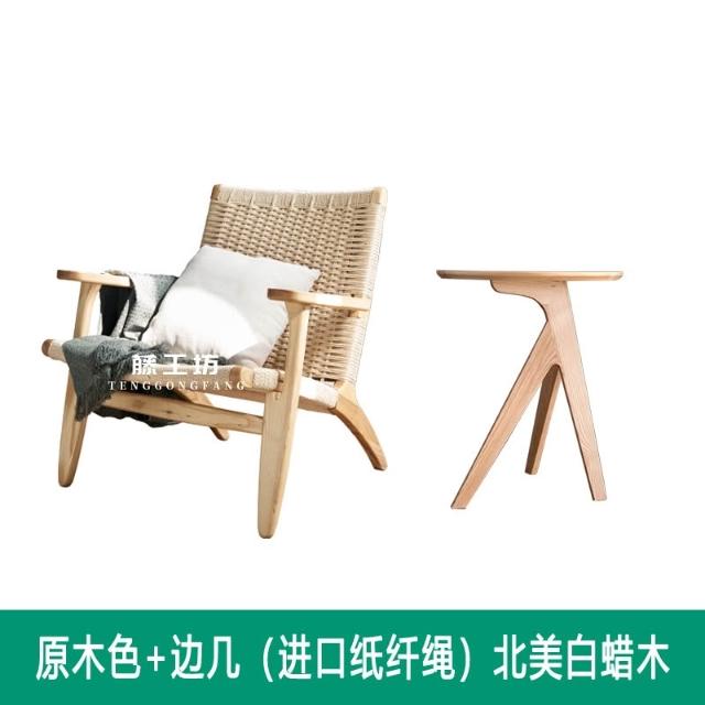 北歐實木藤編扶手椅傢用客廳陽臺靠背椅簡約單人沙髮椅懶人設計師
