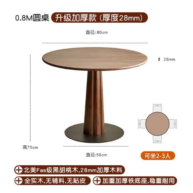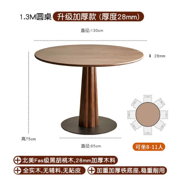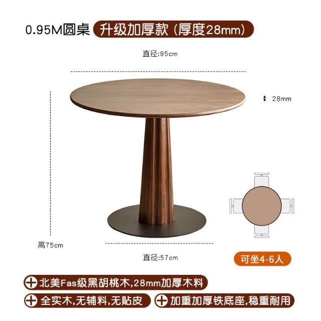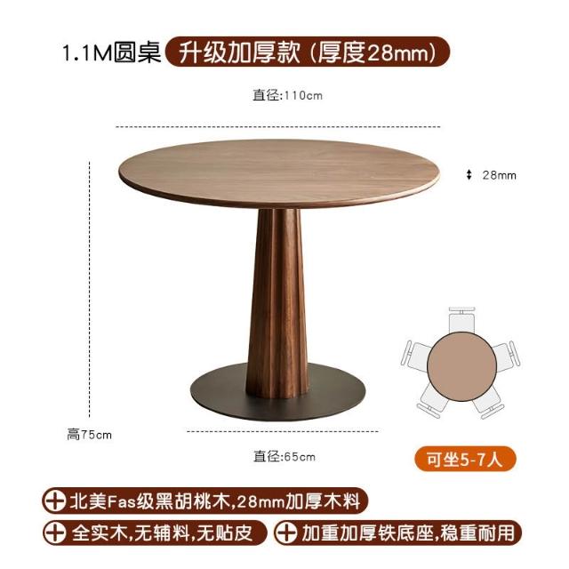 廠家直銷✨免運 北歐實木圓形餐桌 黑胡桃木圓桌 北美簡約休閑飯桌 餐廳傢具天尺圓桌