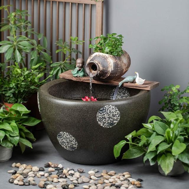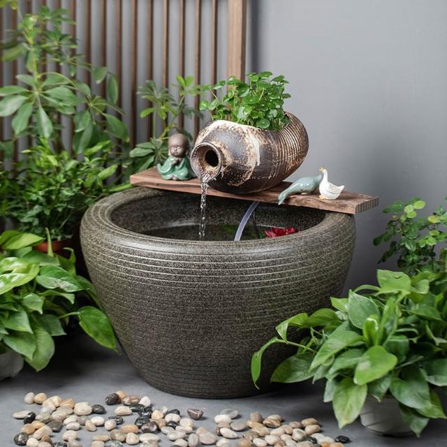 🚛宅配免運🚛 大型陶瓷缸 流水噴泉魚缸 陶罐水循環造景魚缸 古法魚缸 客廳陽台落地大水缸