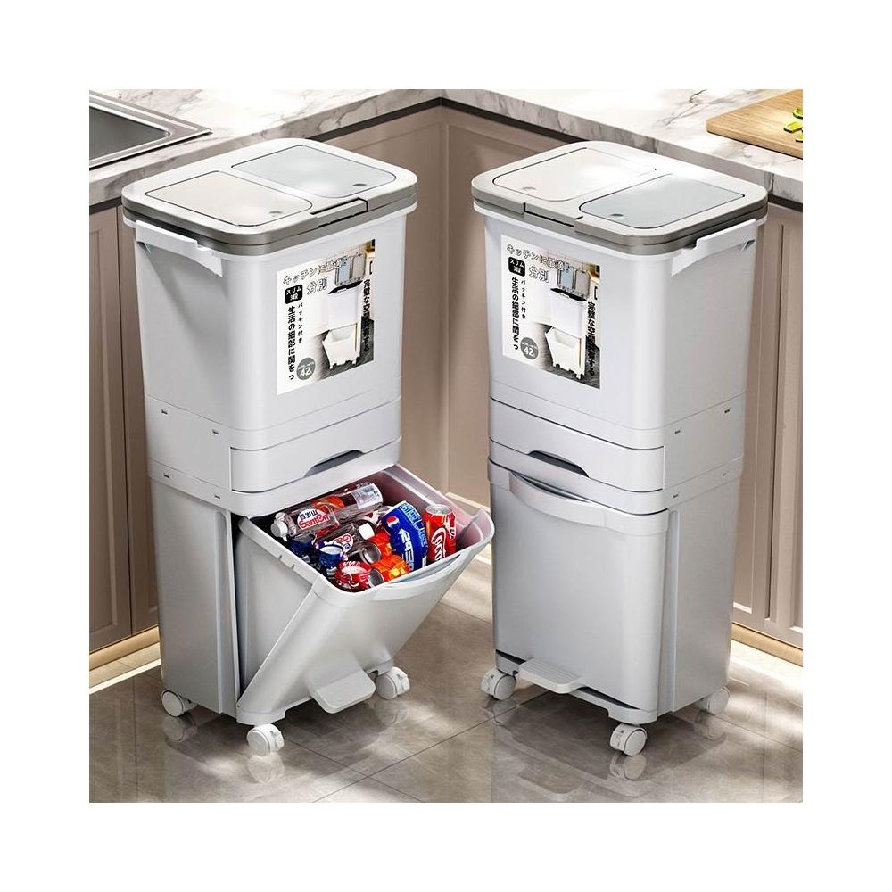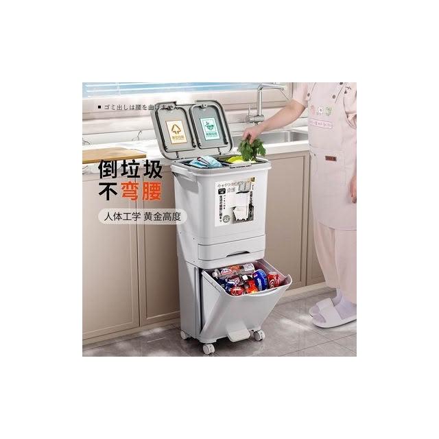 廚房垃圾桶家用帶蓋日式大容量雙層幹濕分離分類三層翻蓋大號立式
