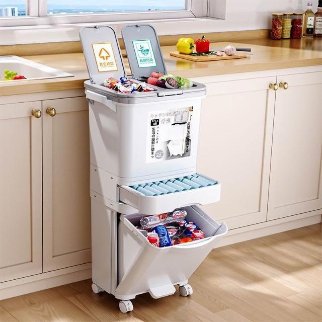 廚房垃圾桶家用帶蓋日式大容量雙層幹濕分離分類三層翻蓋大號立式