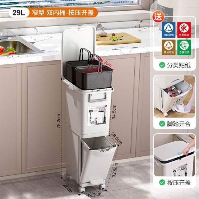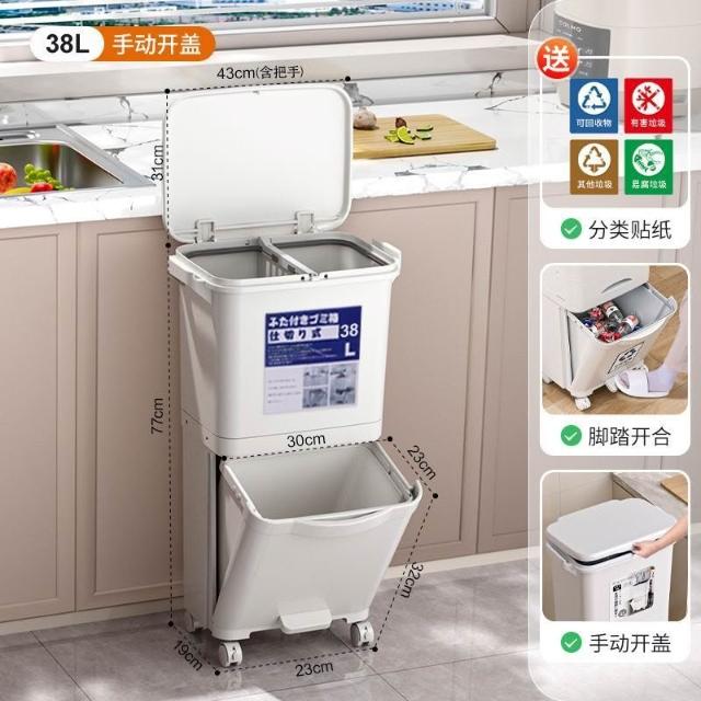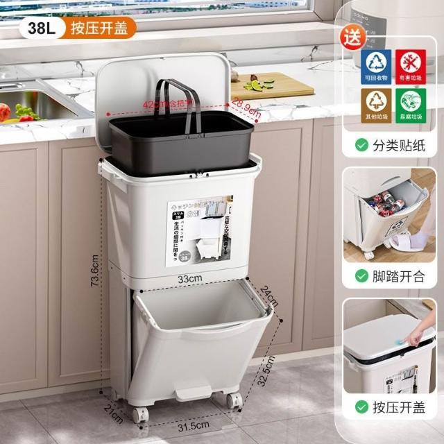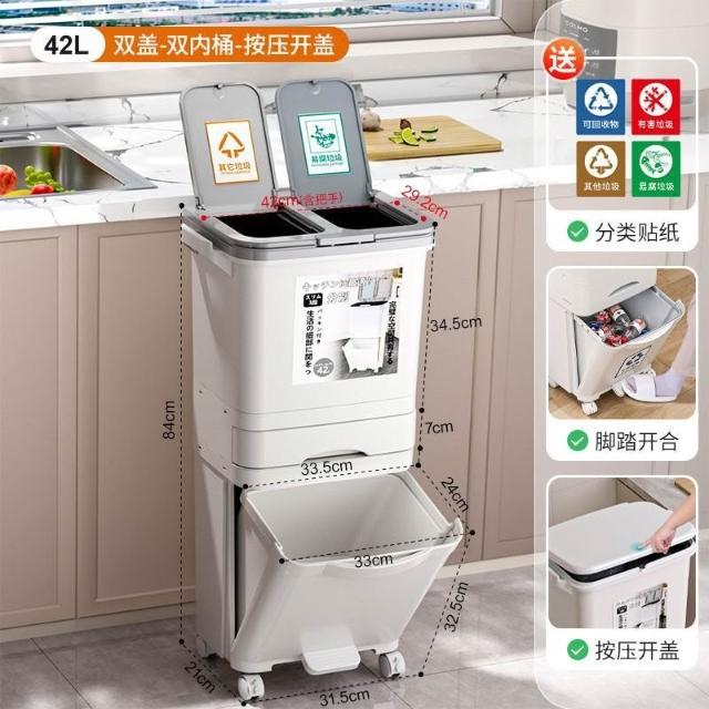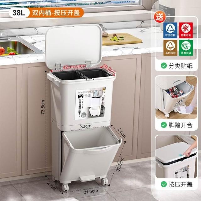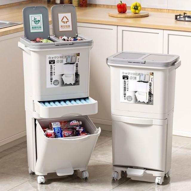 廚房垃圾桶家用帶蓋日式大容量雙層幹濕分離分類三層翻蓋大號立式