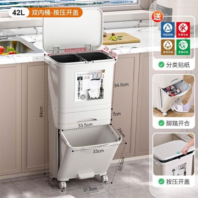 廚房垃圾桶家用帶蓋日式大容量雙層幹濕分離分類三層翻蓋大號立式