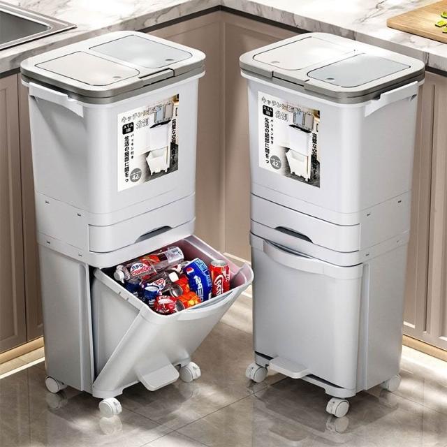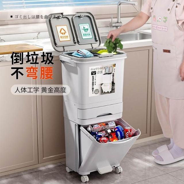 廚房垃圾桶家用帶蓋日式大容量雙層幹濕分離分類三層翻蓋大號立式