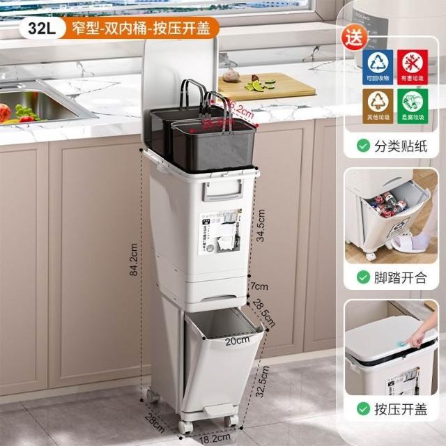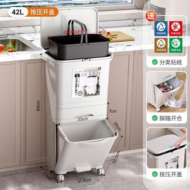 廚房垃圾桶家用帶蓋日式大容量雙層幹濕分離分類三層翻蓋大號立式