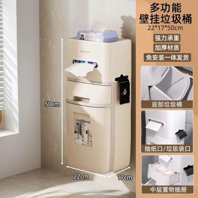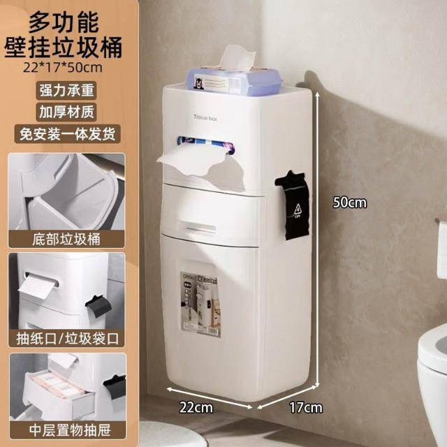 加厚洗手間掛壁垃圾桶辦公室側邊置物架馬桶掛牆垃圾簍雙層多功能