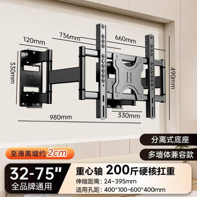 超薄內嵌電視機伸縮掛架75/85/100英寸通用壁掛折疊分離式支架