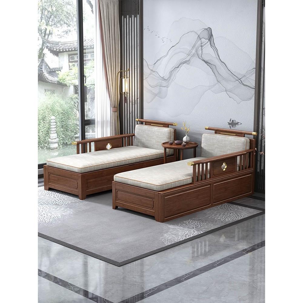 新中式實木貴妃椅躺椅太妃椅沙發胡桃木客廳儲物貴妃塌臥室美人榻