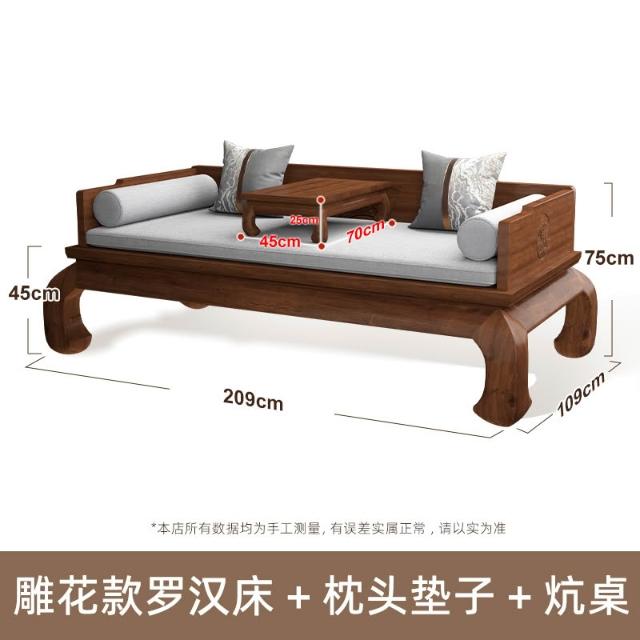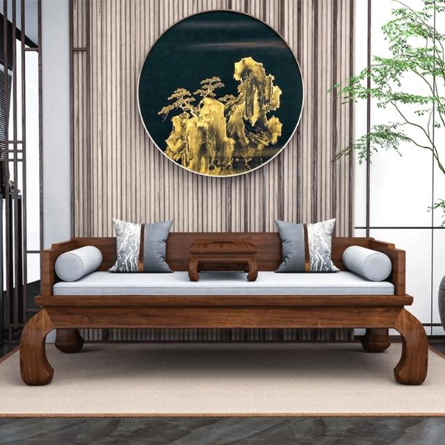 新中式實木羅漢床三件套兩用仿古羅漢榻床榻榆木沙發簡約客廳傢俱