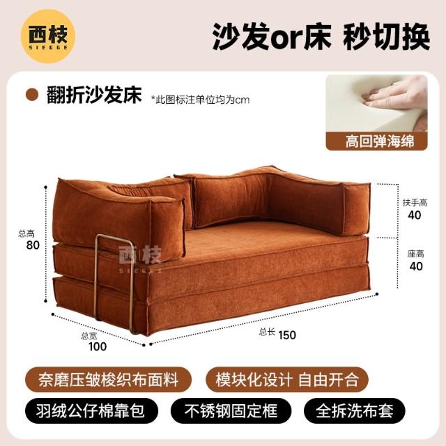 復古可折疊沙發床布丁客廳兩用坐臥拆洗單雙人模組布藝沙發床