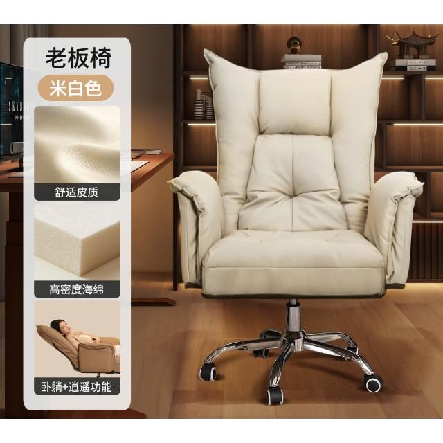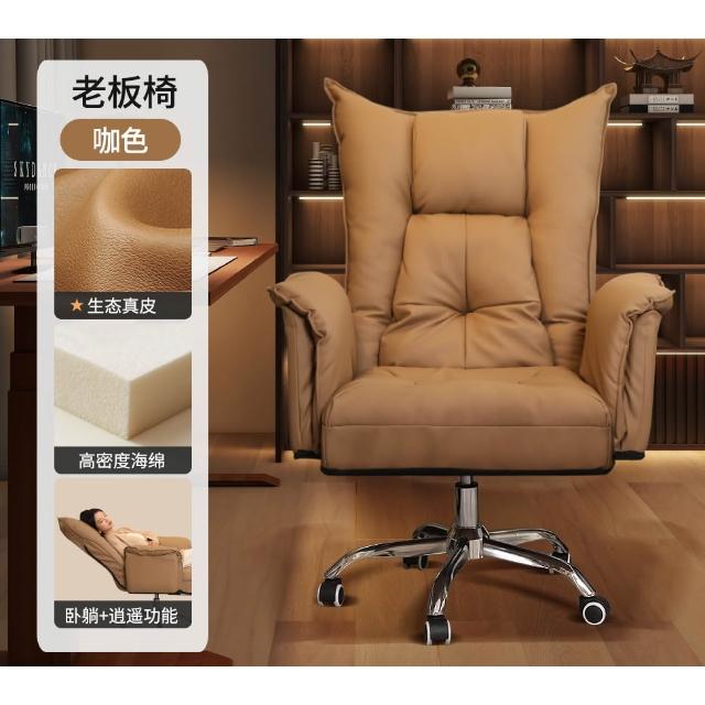 真皮老闆椅家用電腦沙發椅舒適久坐靠背辦公室座椅午休可躺書房椅