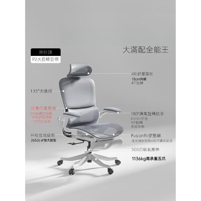 黑白調P2Pro人體工學椅子電腦椅家用舒適久坐辦公椅學習椅電競椅
