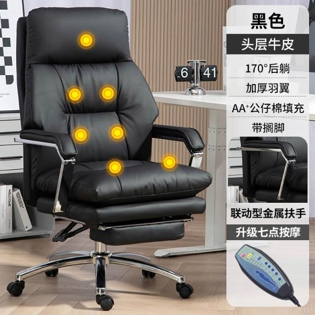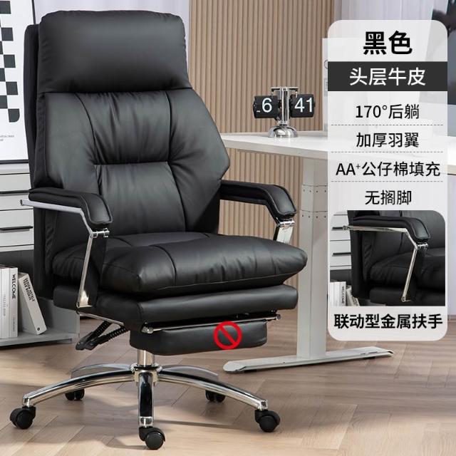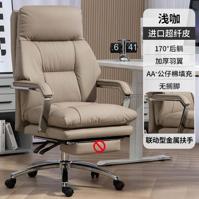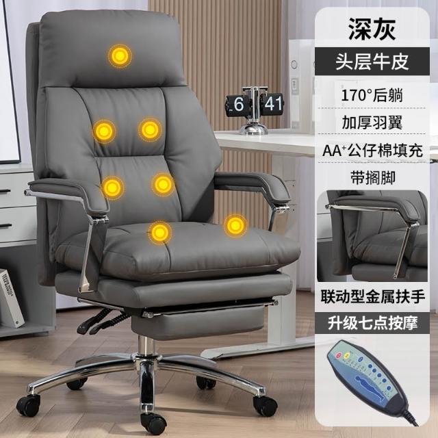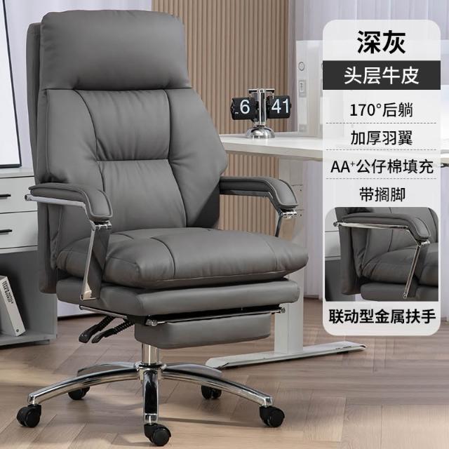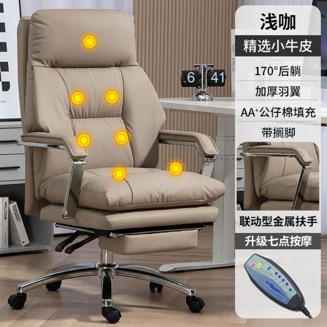 真皮老闆椅輕奢辦公椅人體工學可躺電腦椅家用舒適午休沙發椅子