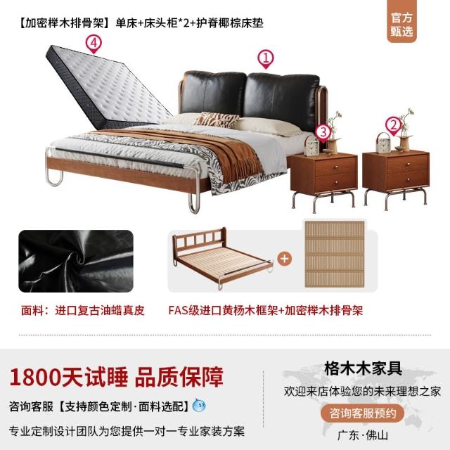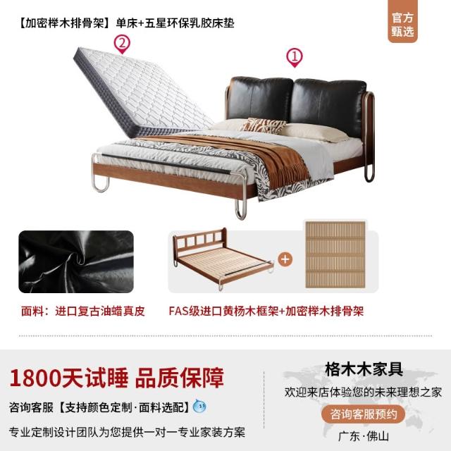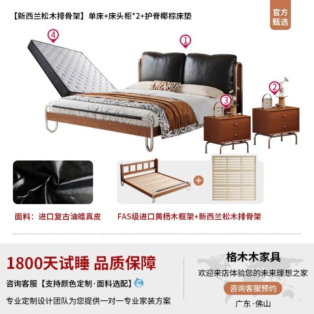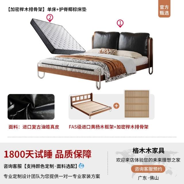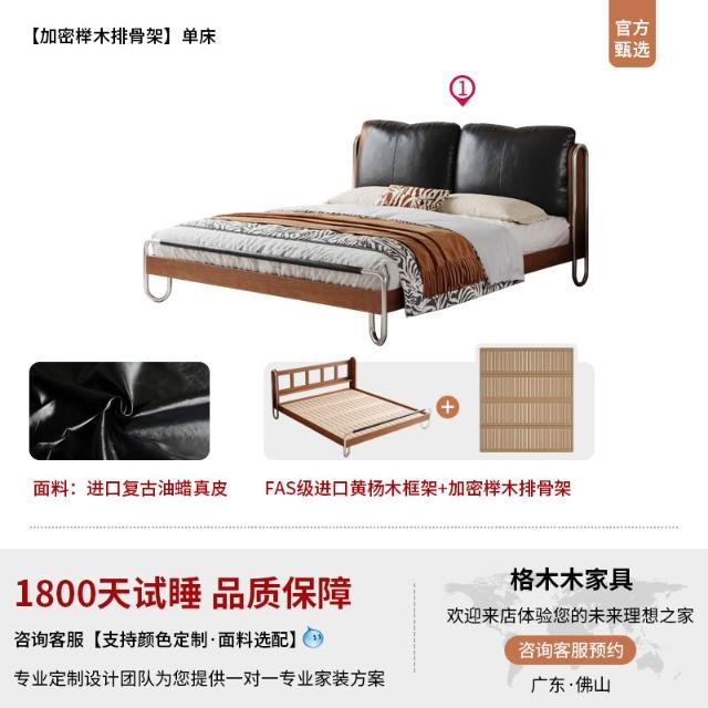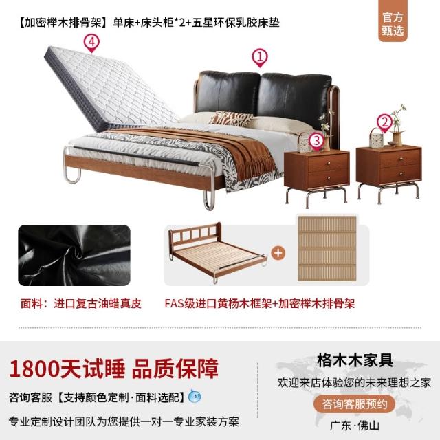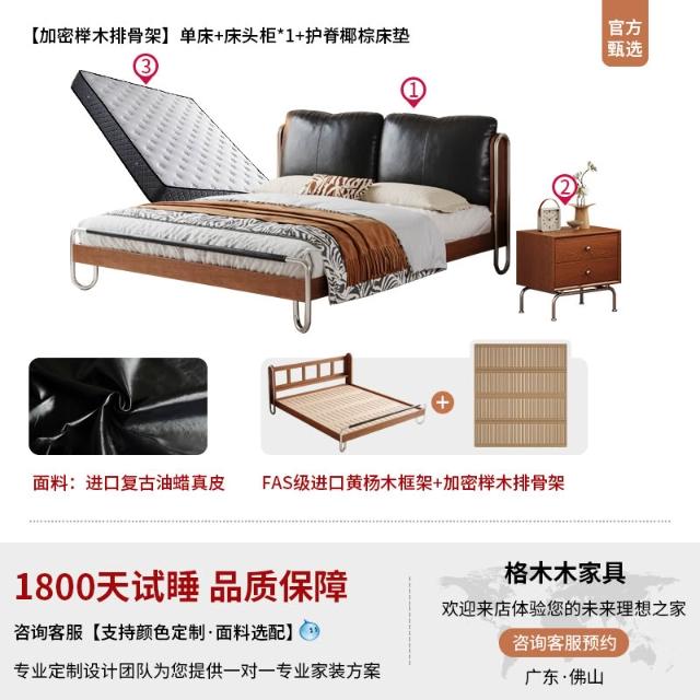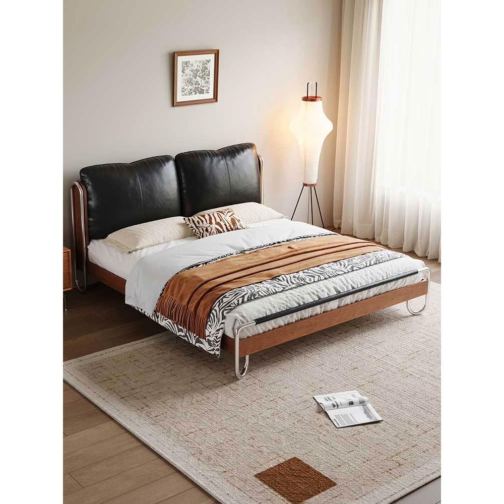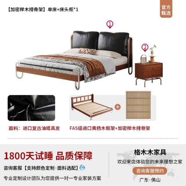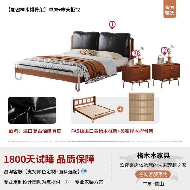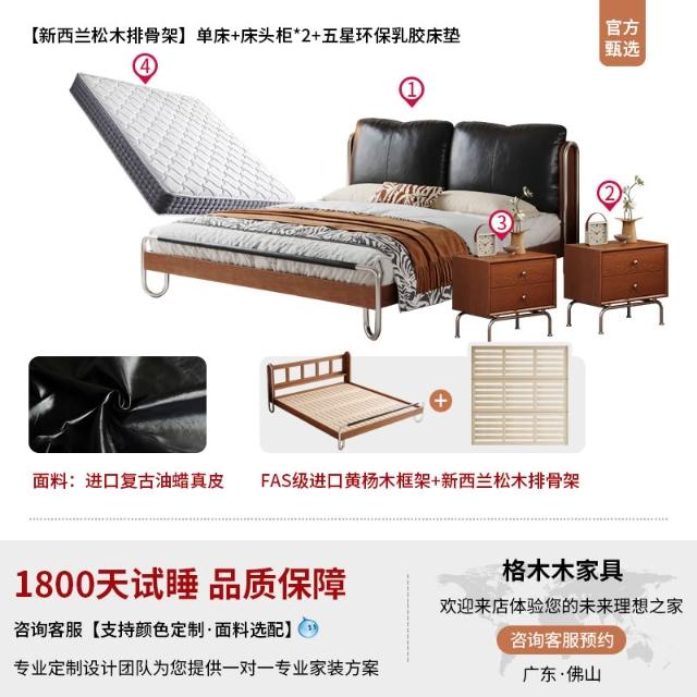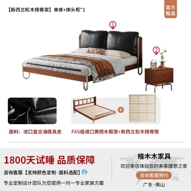 中古風黑色包豪斯床 法式復古軟包床 家用真皮實木小戶型床 主臥流影床