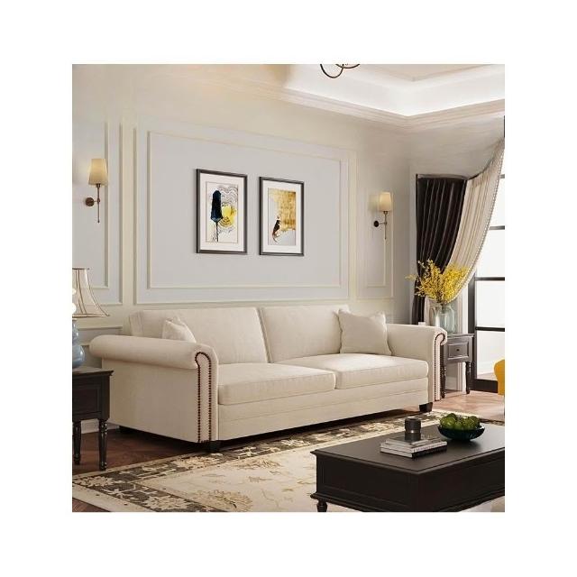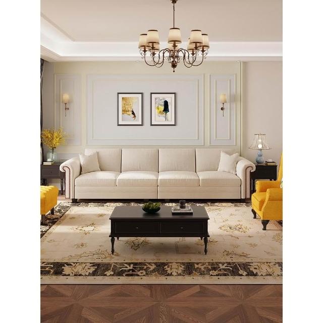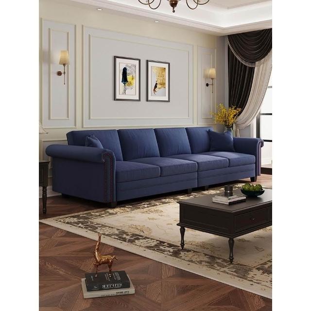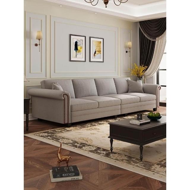 美式復古風棉麻沙發客廳現代北歐中古風鄉村別墅拉扣直排布藝沙發