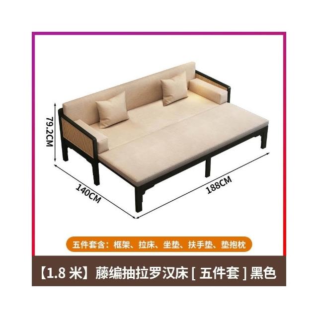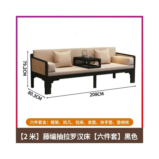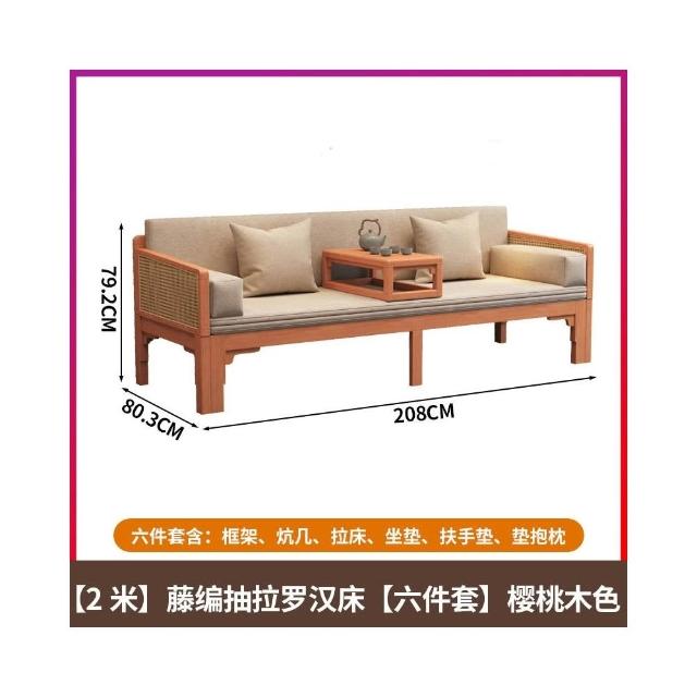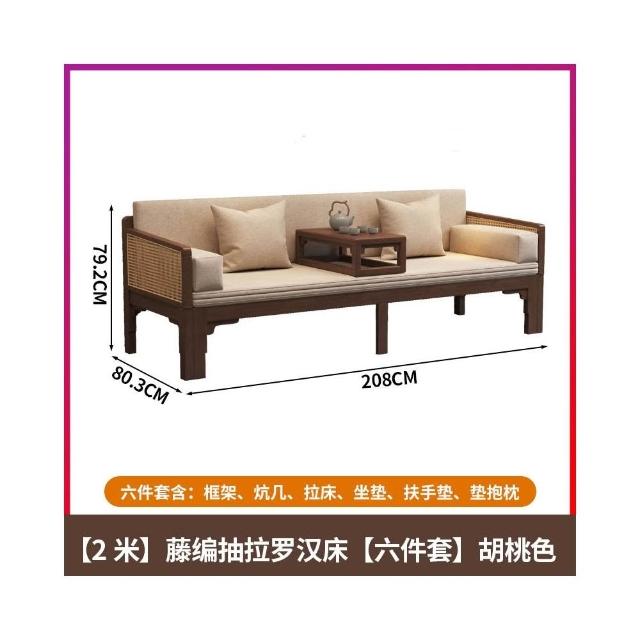全實木羅漢床新中式藤編羅漢榻宋代美學沙發床兩用禪意貴妃推拉床