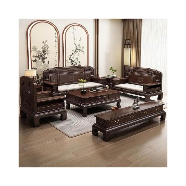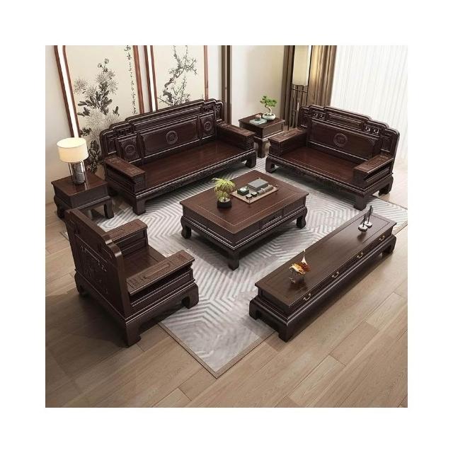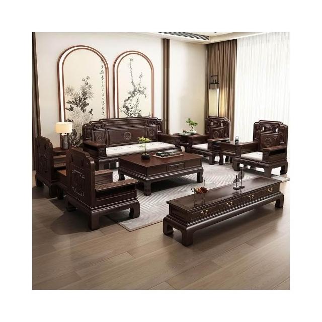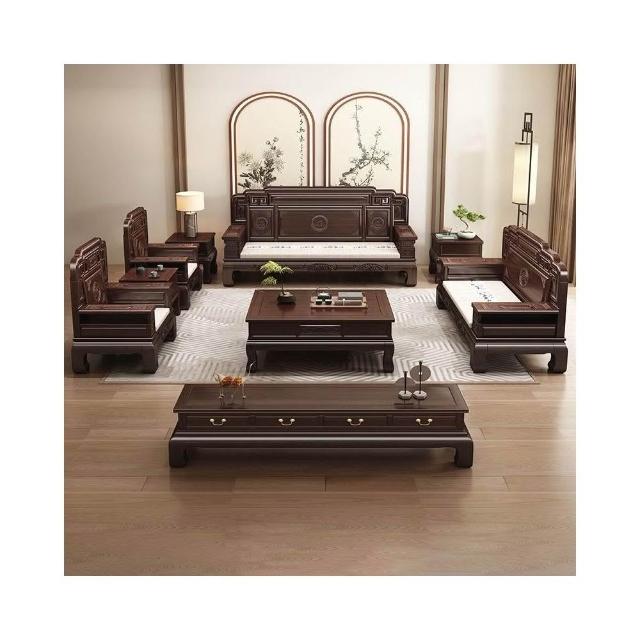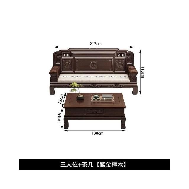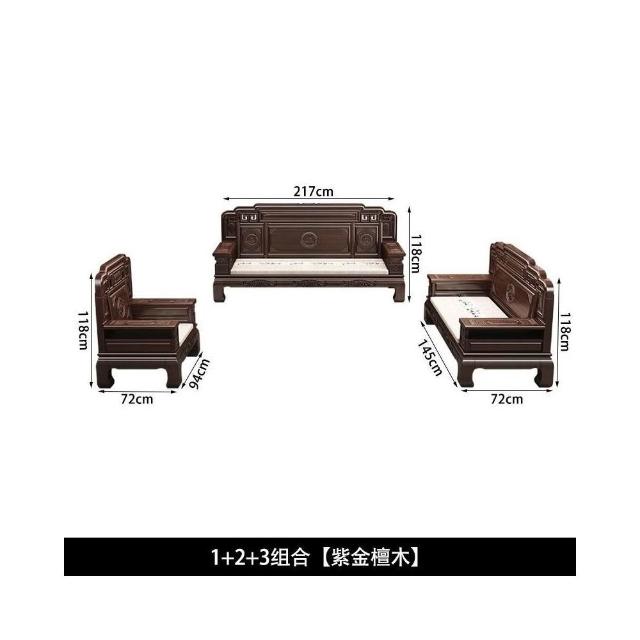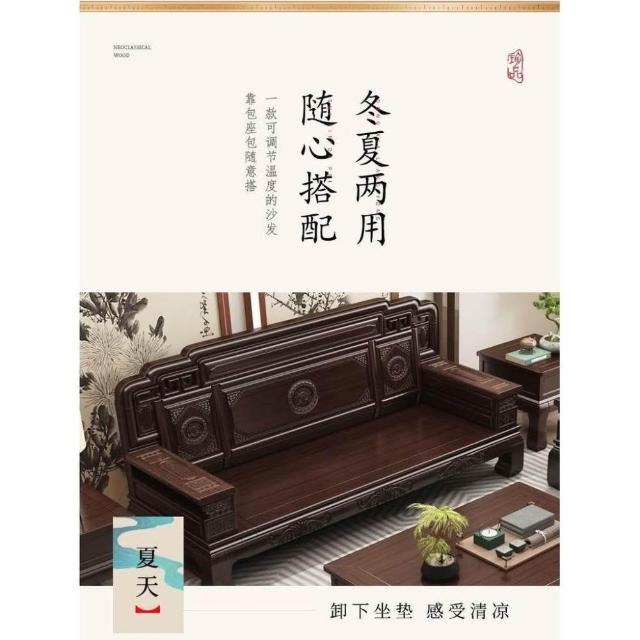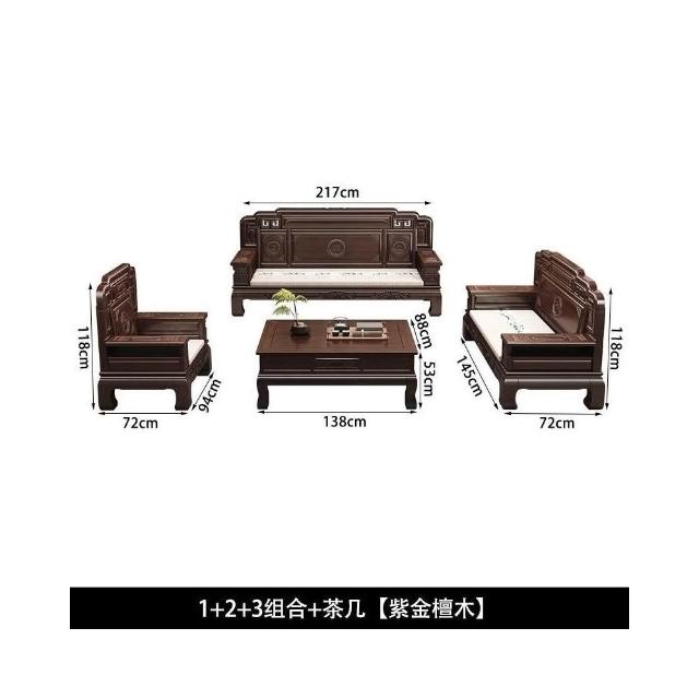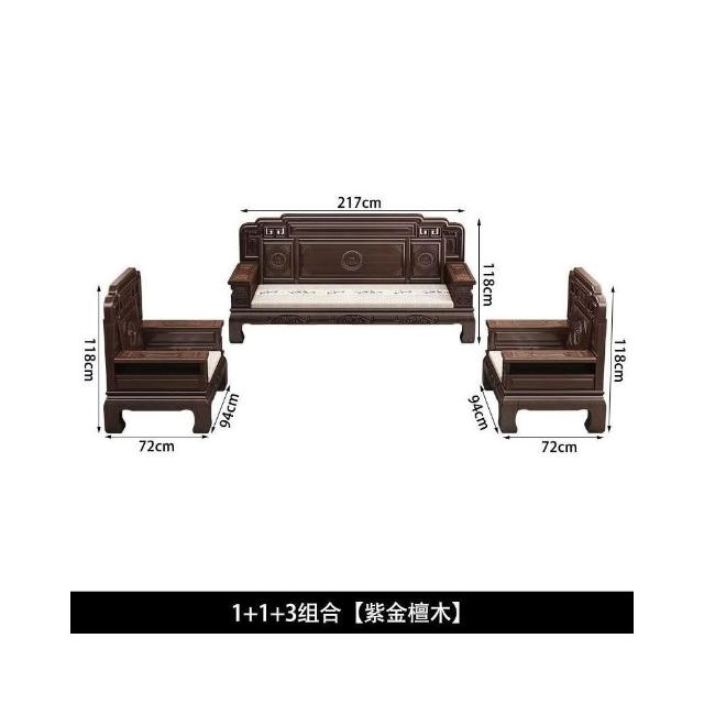 新中式紫金檀木全實木沙發組合仿古雕花客廳別墅冬夏兩用古典家具