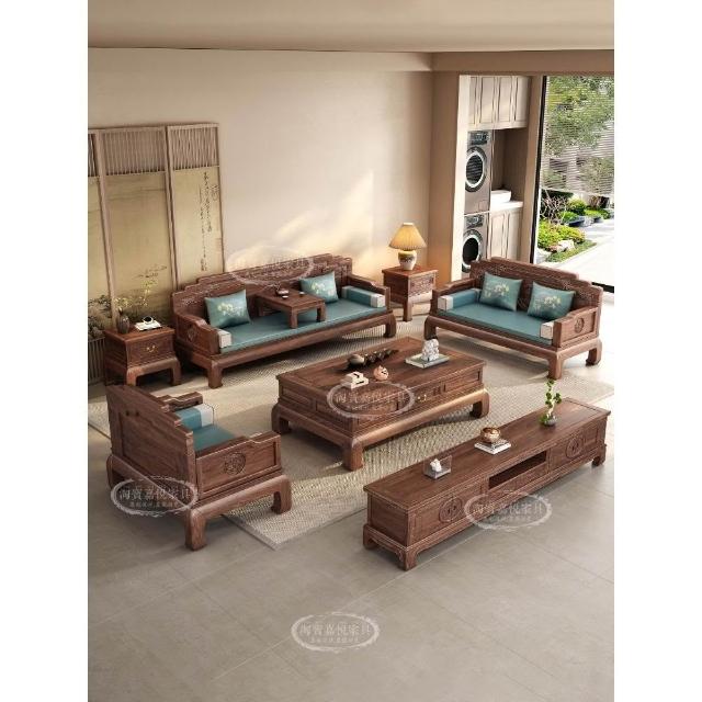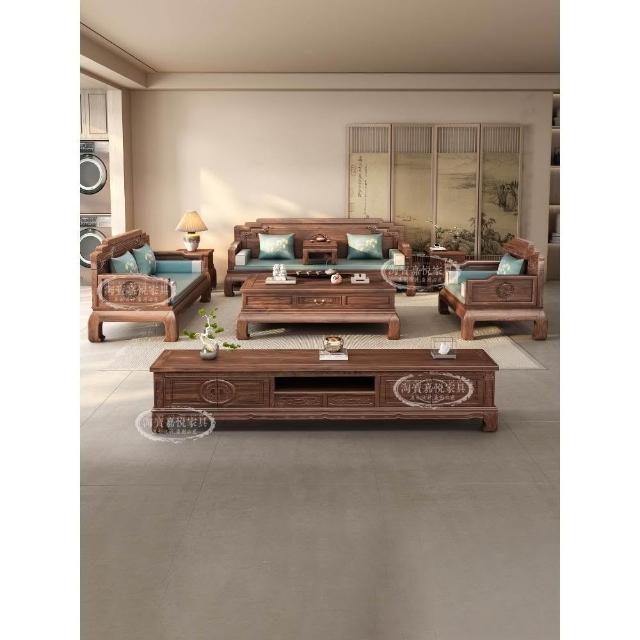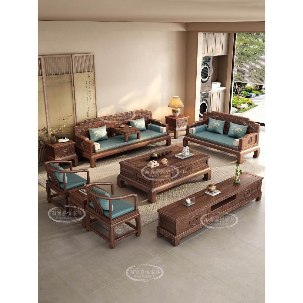 中式花梨木實木沙發客廳組合大小戶型冬夏兩用胡桃色宋代美學家具