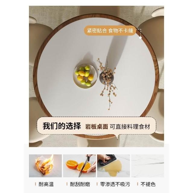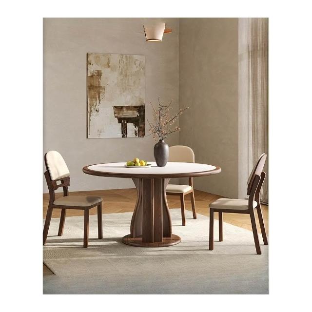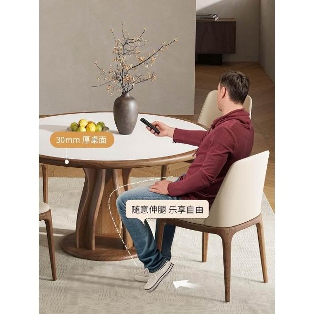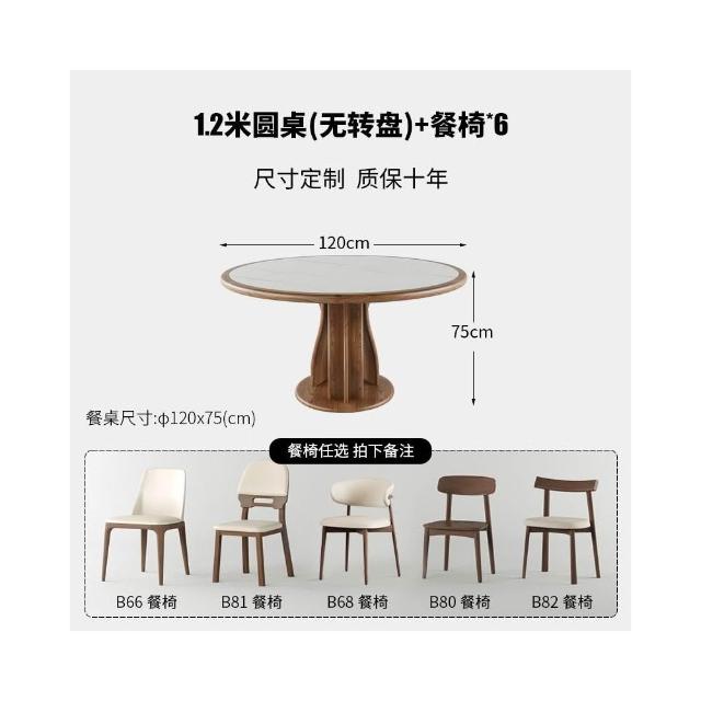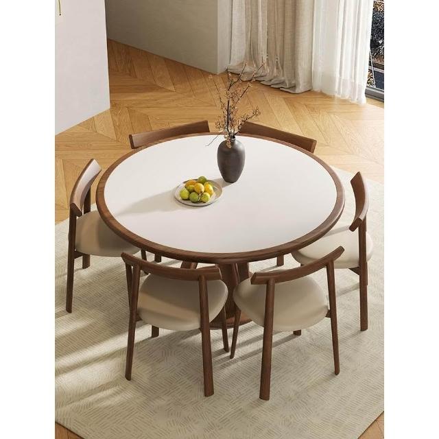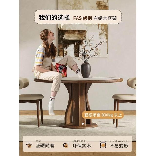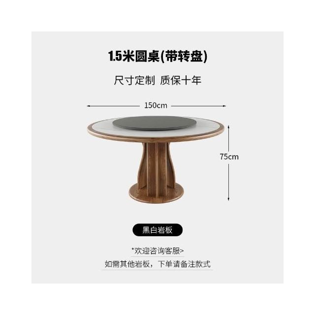 實木岩板餐桌椅組合中式中古風圓桌帶轉盤家用胡桃色圓形桌小戶型