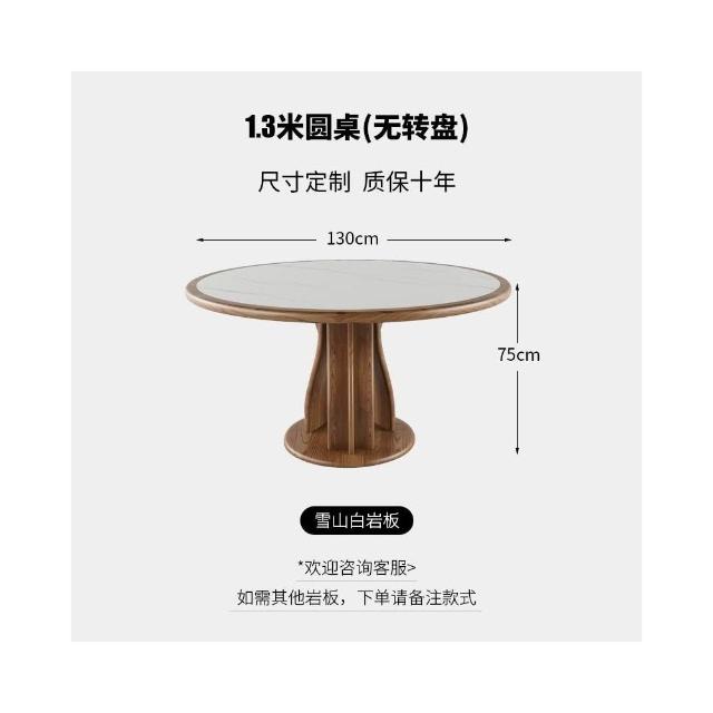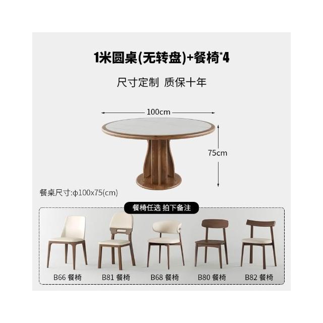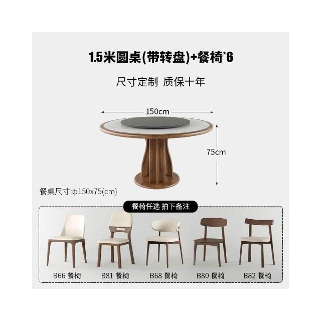 實木岩板餐桌椅組合中式中古風圓桌帶轉盤家用胡桃色圓形桌小戶型