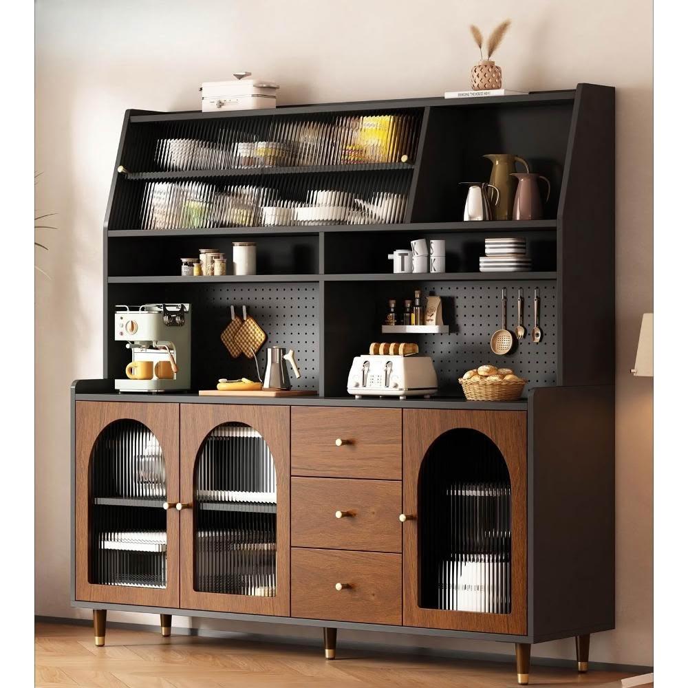 洞洞板中古復古餐邊櫃靠牆一體家用咖啡機廚房客廳酒櫃置物架櫥櫃