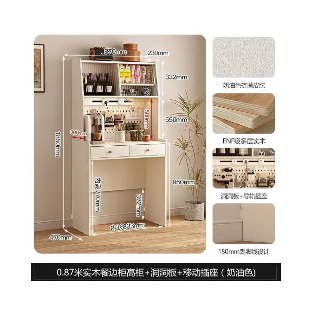 洞洞板多層餐邊櫃帶餐桌一體靠牆1.5米小戶型高櫃儲物櫃插座軌道
