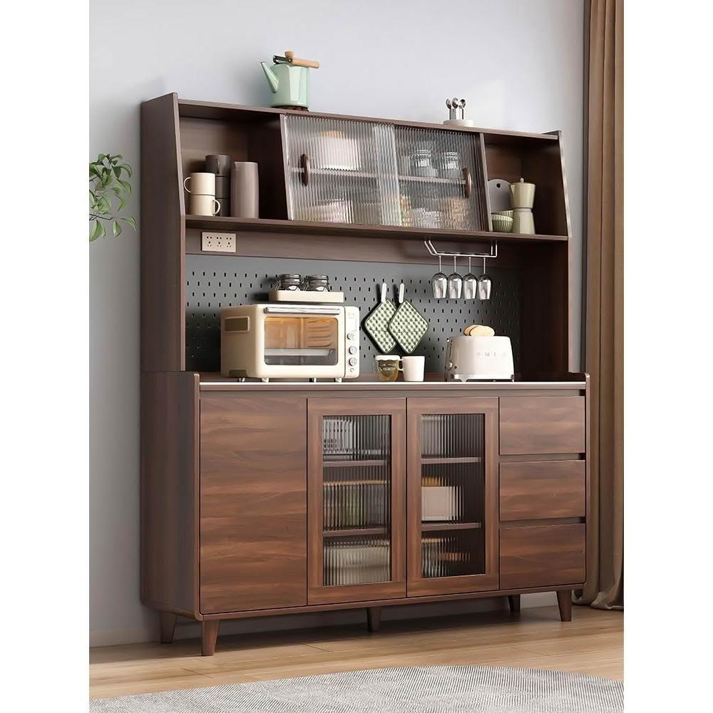 實木餐邊櫃現代簡約客廳酒櫃茶水櫃廚房儲物櫃收納櫃櫥櫃一體靠牆