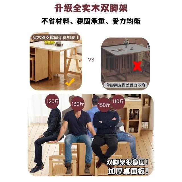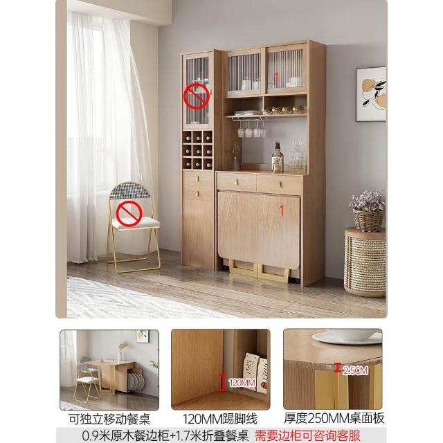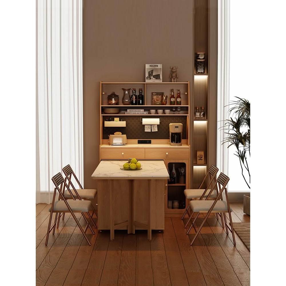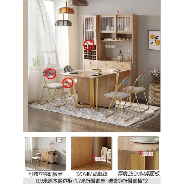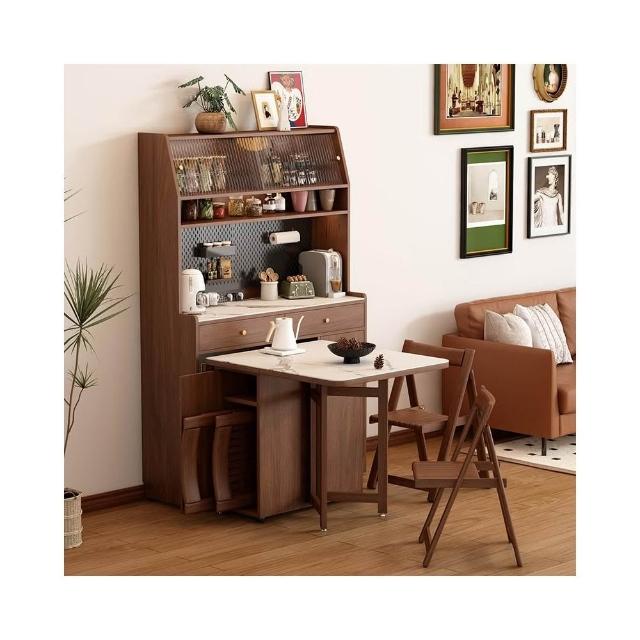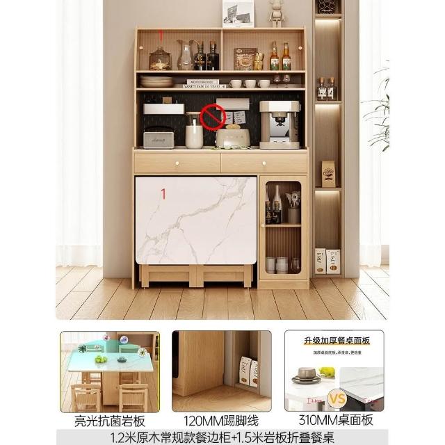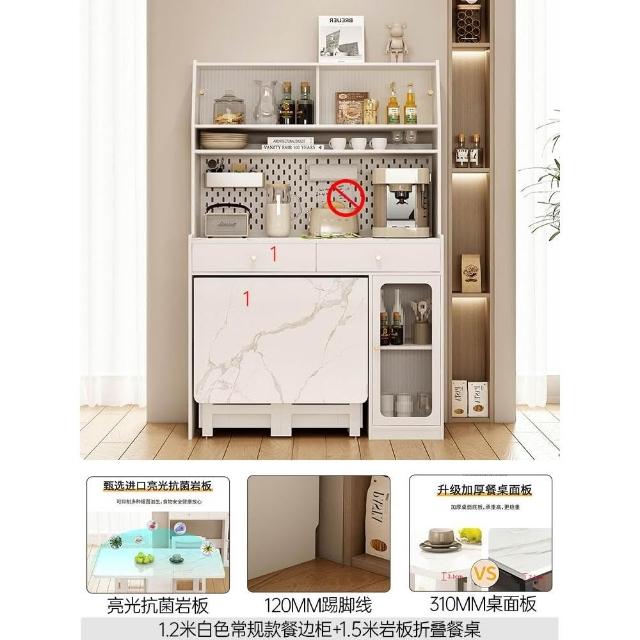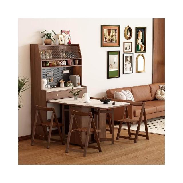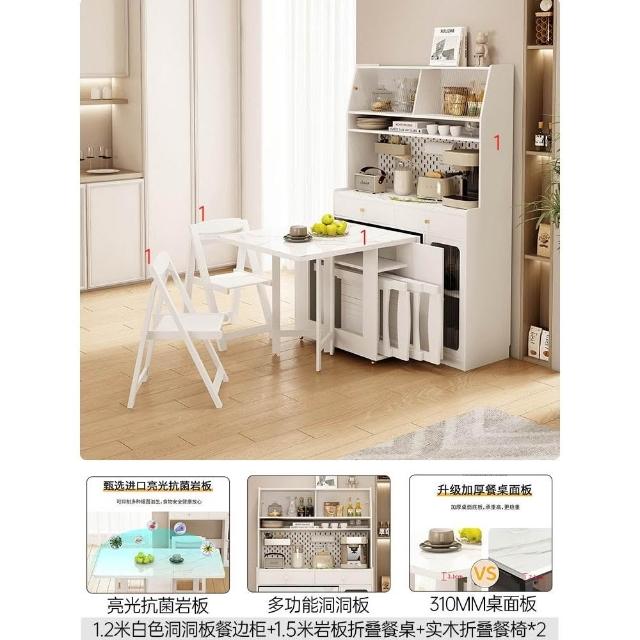 岩板餐邊櫃餐桌一體折疊可移動伸縮家用多功能小戶型收納實木椅