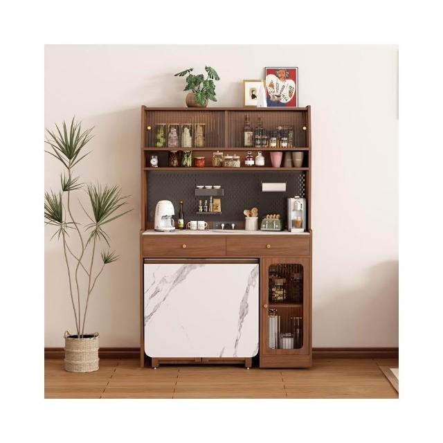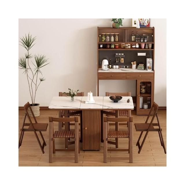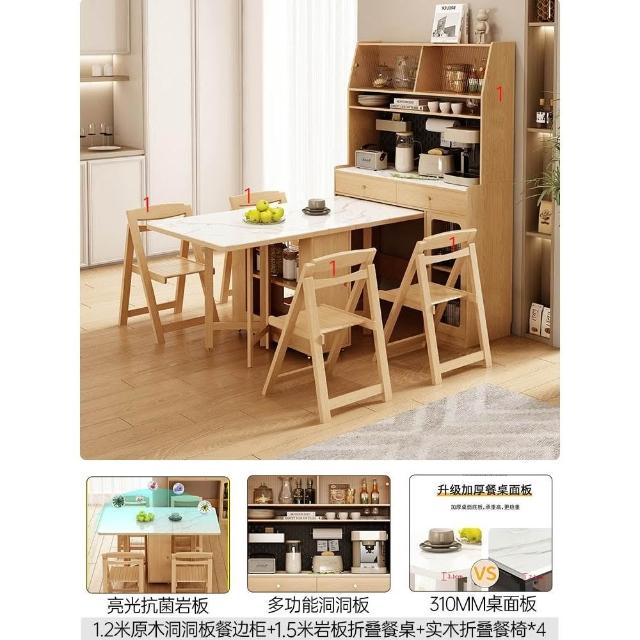 岩板餐邊櫃餐桌一體折疊可移動伸縮家用多功能小戶型收納實木椅