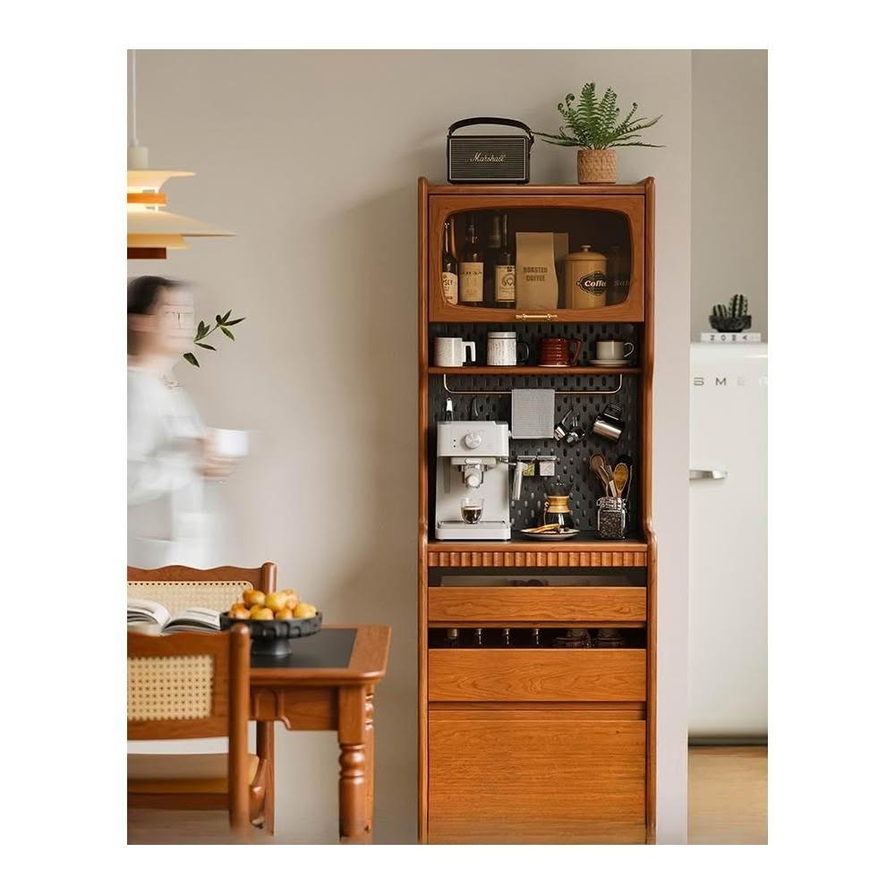 復古實木餐邊櫃家用小戶型黃楊木中古高櫃靠牆收納儲物窄邊櫃