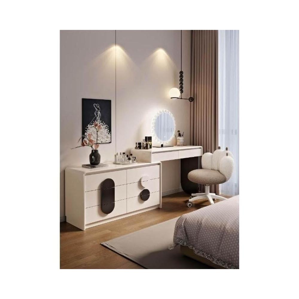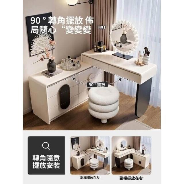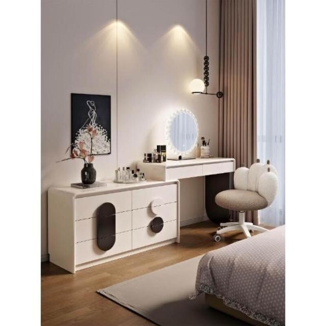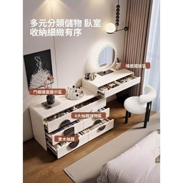 加厚實木梳妝臺現代簡約臥室收納化妝桌一體輕奢烤漆床尾梳妝桌大