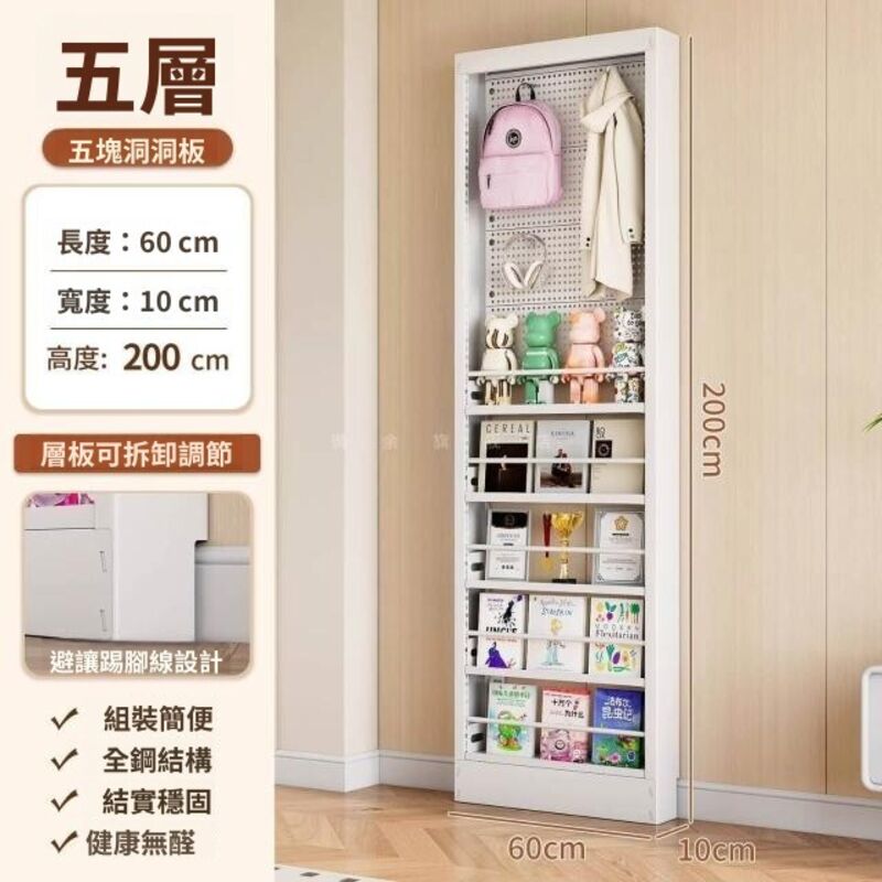 門後置物架超薄洞洞板書架落地金屬架子靠墻立式夾縫架壁掛窄邊櫃