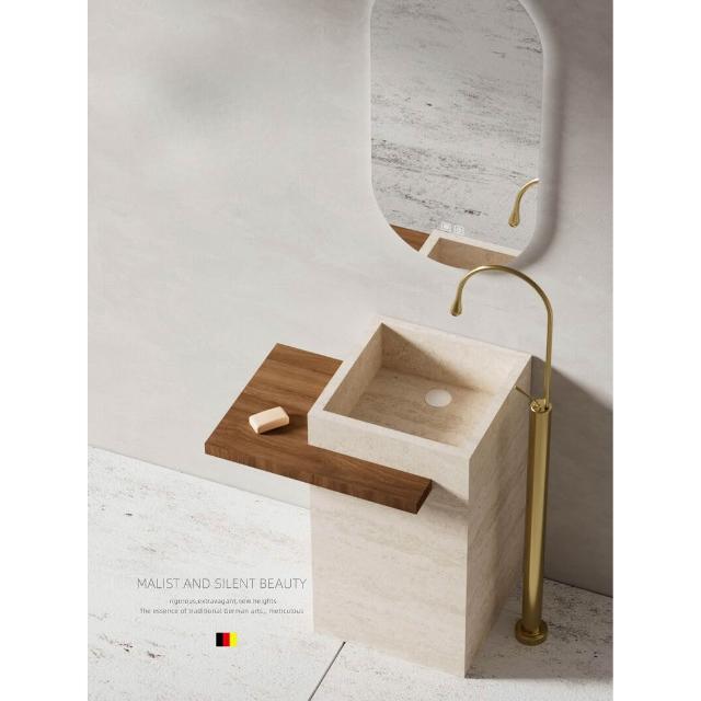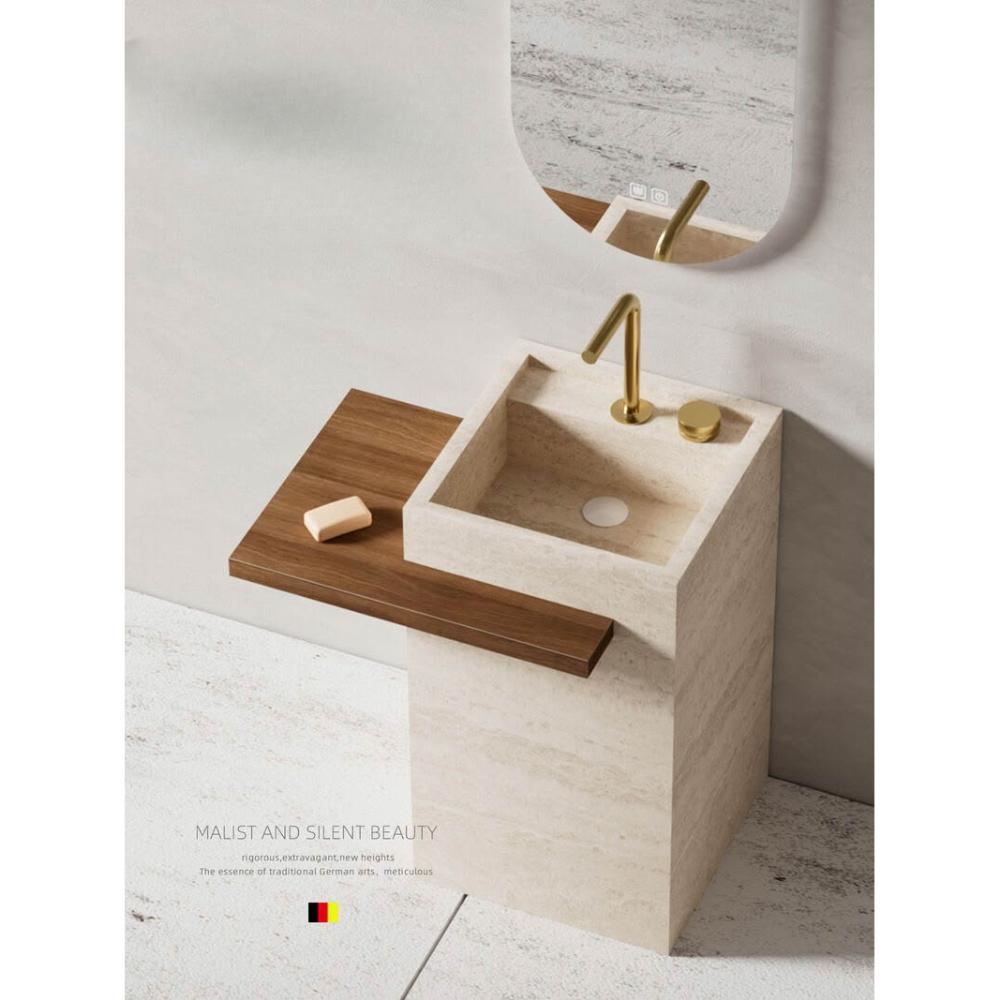 酒店民宿巖板立柱盆洗手盆一體落地式戶外庭院洞石洗手臺