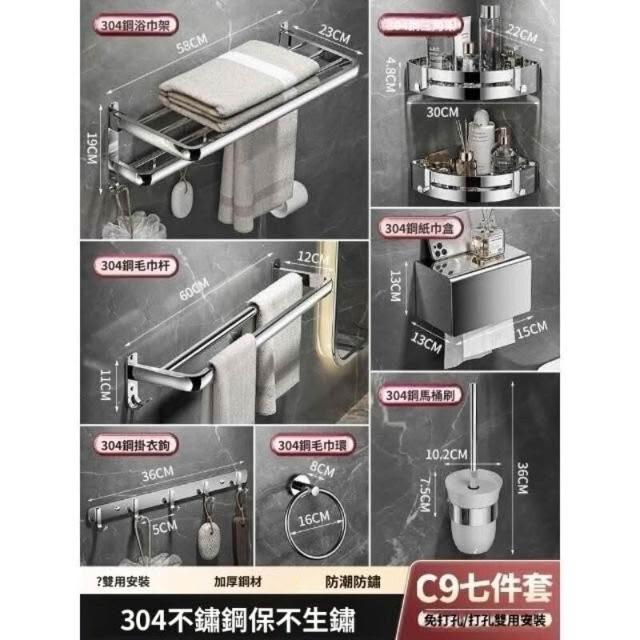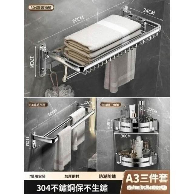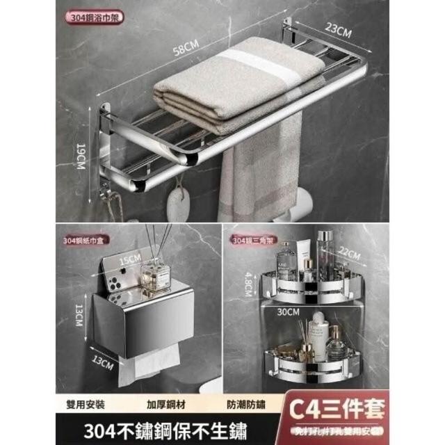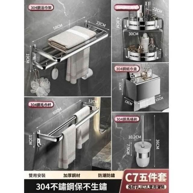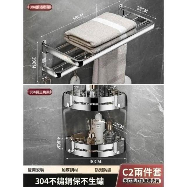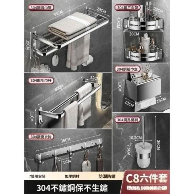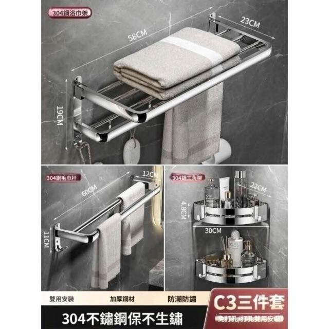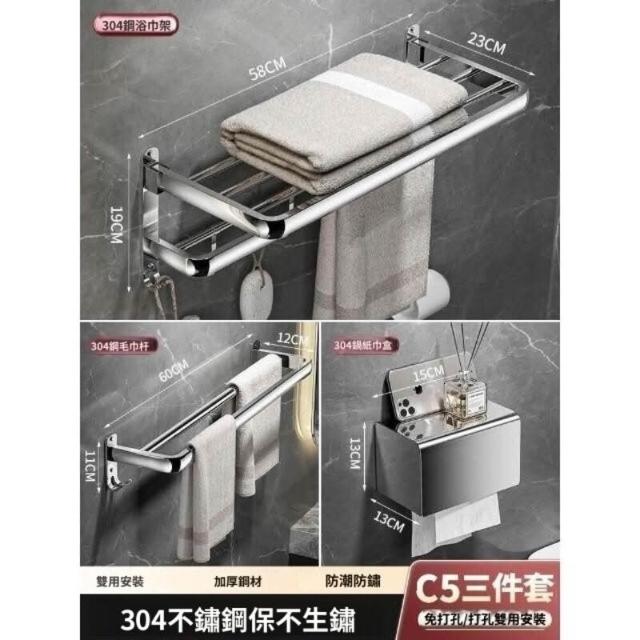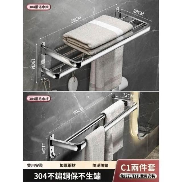 「免運」毛巾架304不銹鋼免打孔衛生間浴巾架浴室置物架衛浴五金掛件套裝