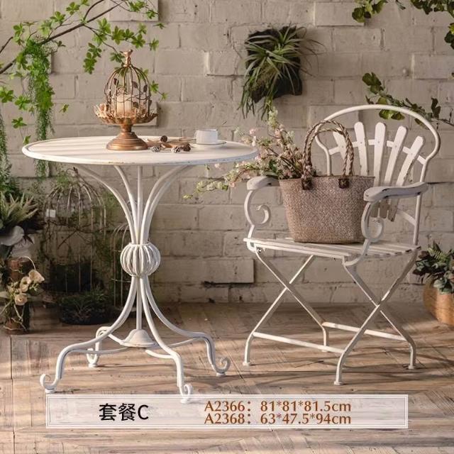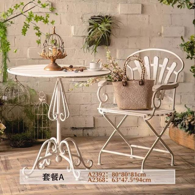 法式下午茶桌椅組合復古做舊莫奈花園戶外庭院鐵藝陽臺小圓桌椅子