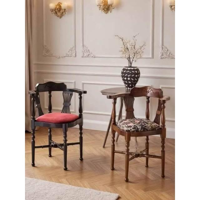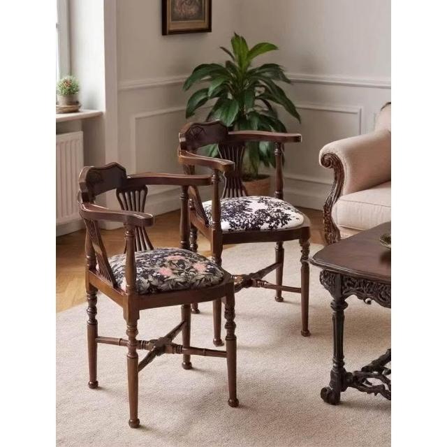 法式伊麗莎白椅三角椅家用扶手靠背椅設計師椅子復古家用休閑椅子