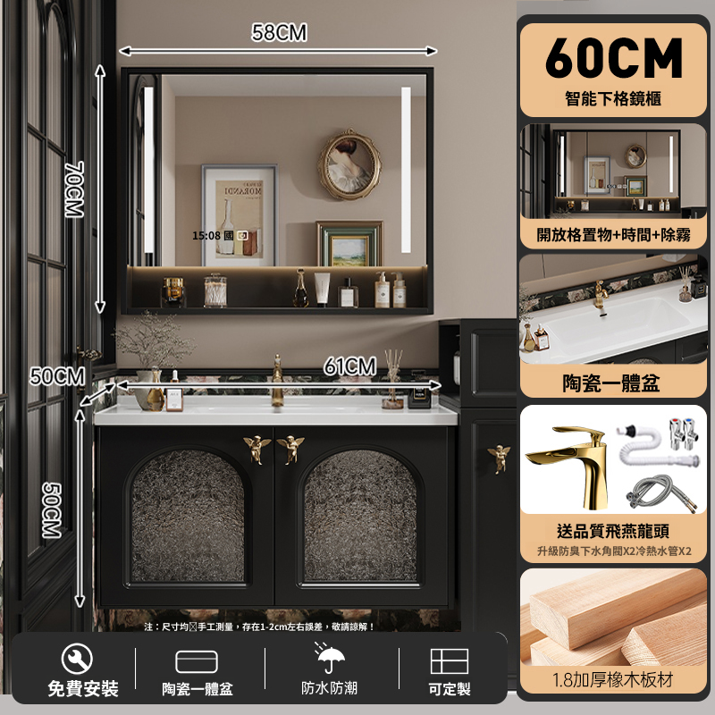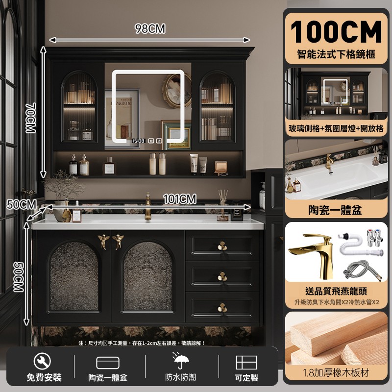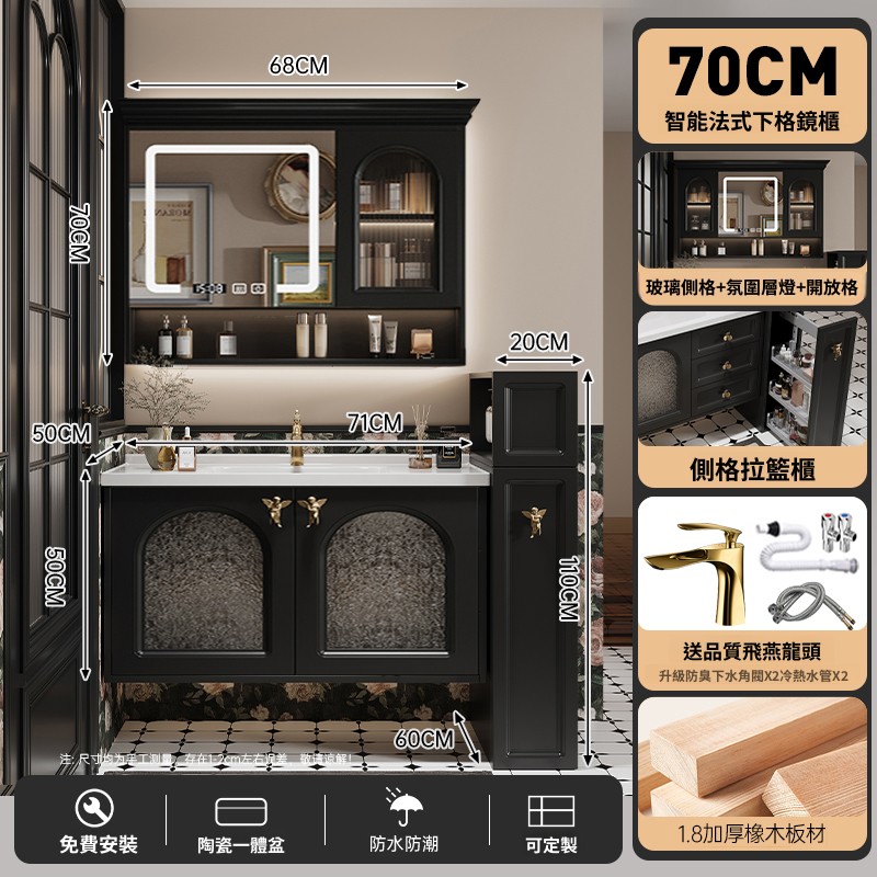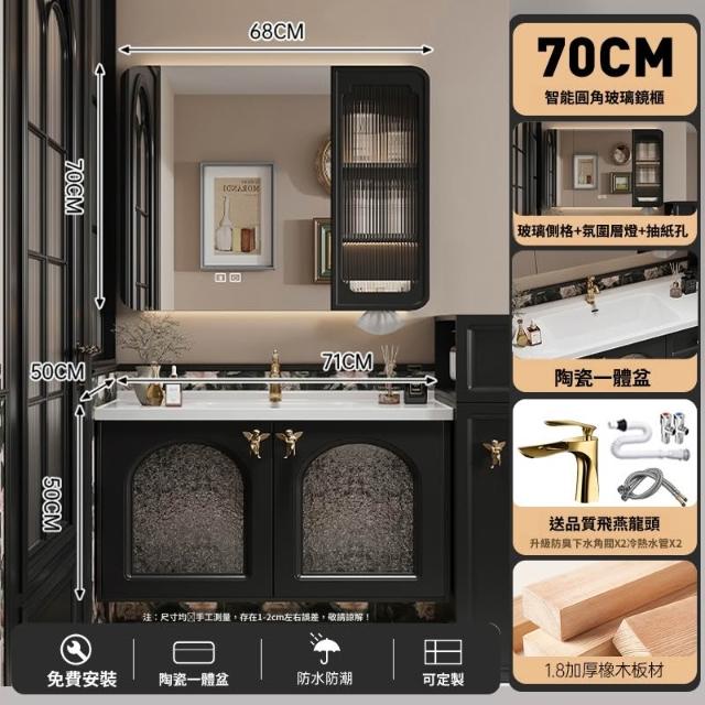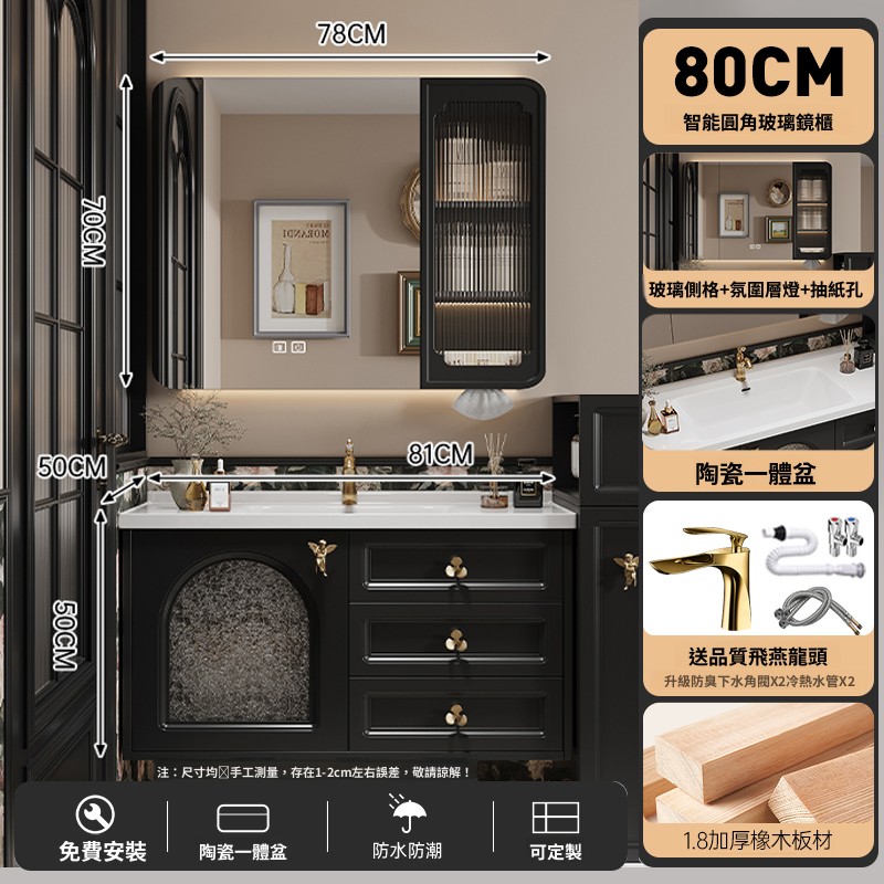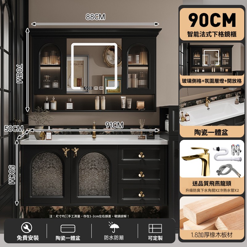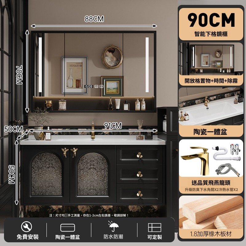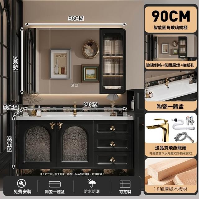 法式復古風橡膠木烤漆智能半墻浴室櫃組合衛生間陶瓷一體洗手洗臉