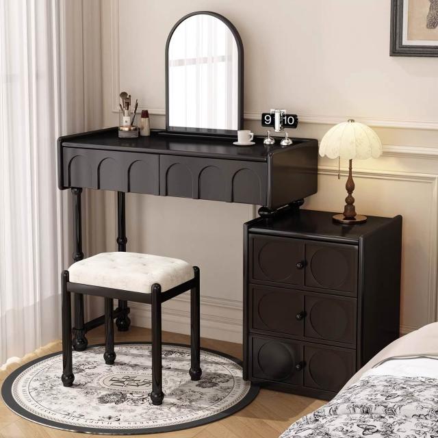 法式實木梳妝臺鬥櫃一體中古風小戶型臥室收納櫃60CM復古化妝桌