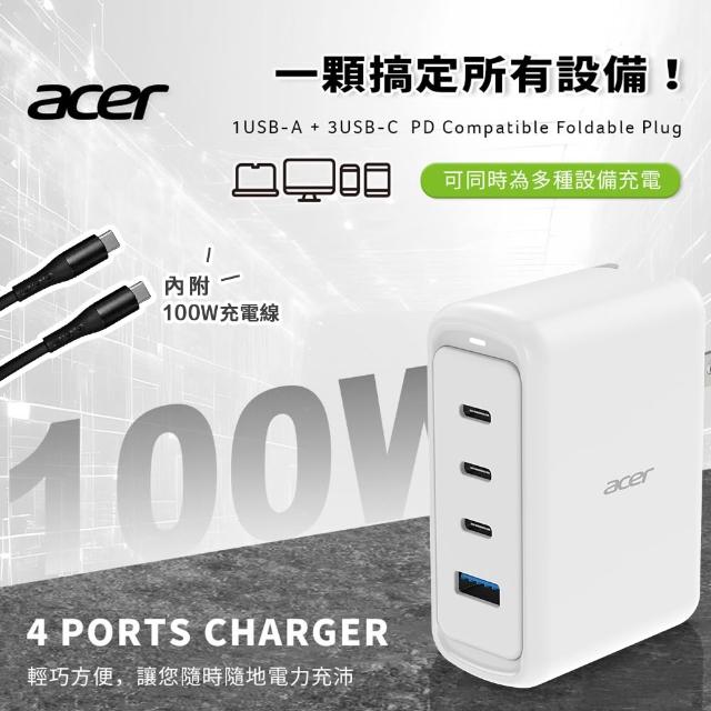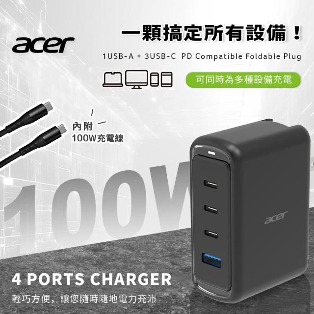 Acer 100W 氮化鎵GaN USB-C 四孔充電器/旅充