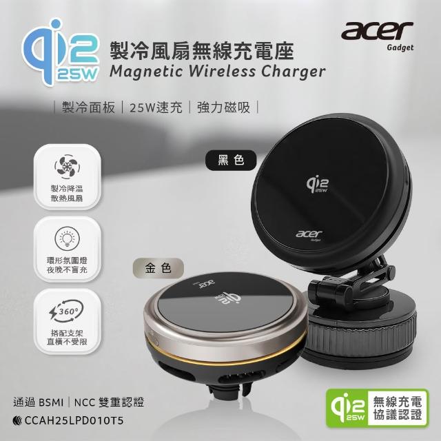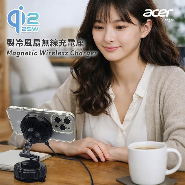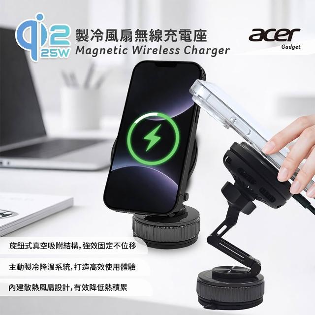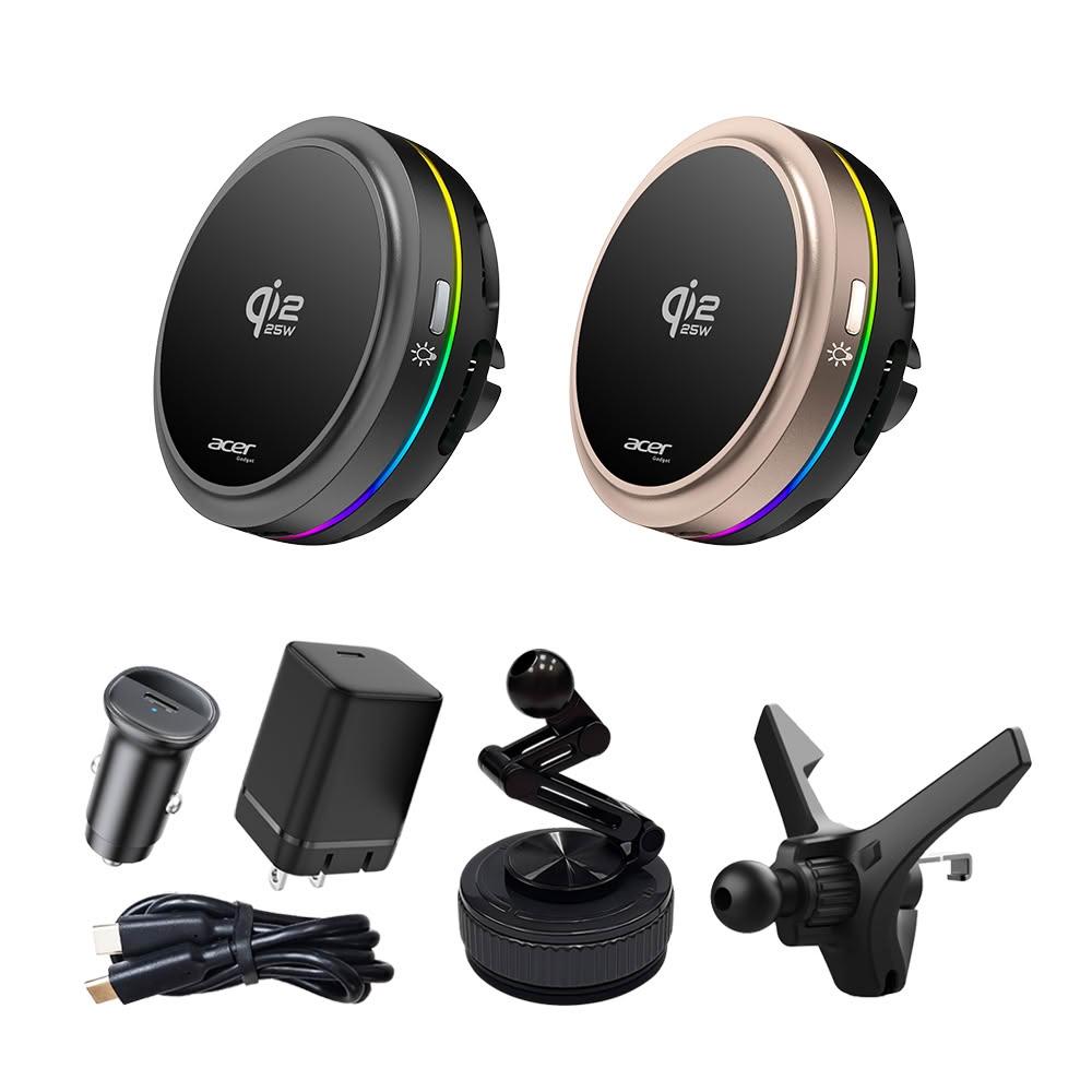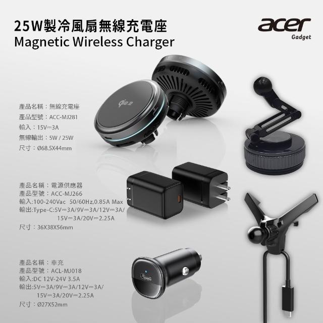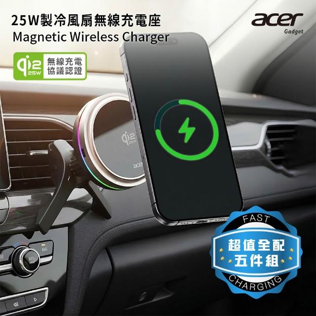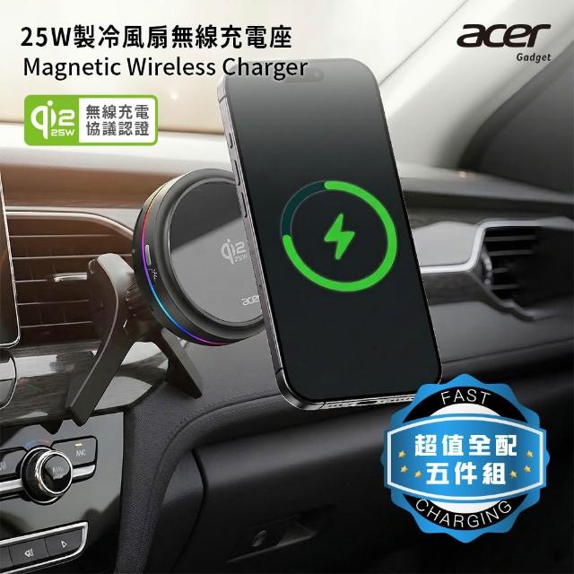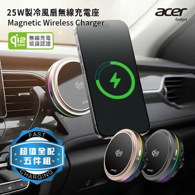 Acer Qi2.2 25W 製冷風扇磁吸無線車充/充電座 超值全配五件組(ACC-MJ281)