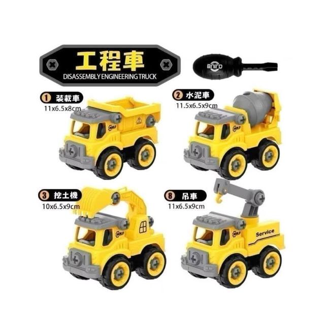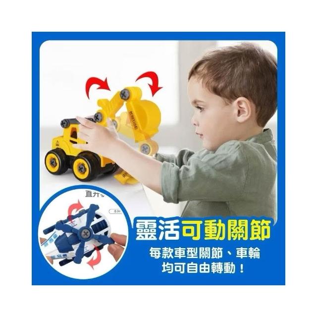 DIY組裝車 4台裝 鎖螺絲玩具車 拆卸組裝車 益智玩具 兒童玩具 消防車 工程車 挖土機 螺絲起子 砂石車 警車 飛機