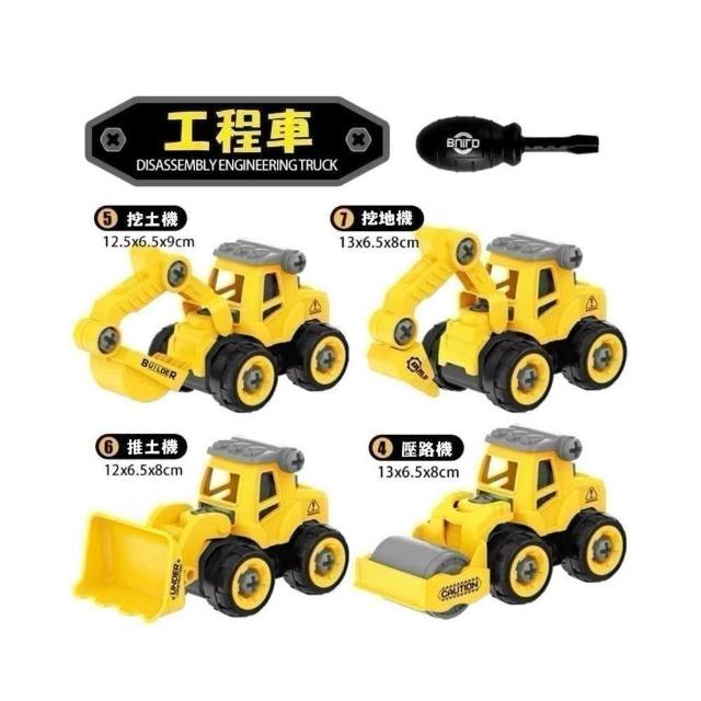 DIY組裝車 4台裝 鎖螺絲玩具車 拆卸組裝車 益智玩具 兒童玩具 消防車 工程車 挖土機 螺絲起子 砂石車 警車 飛機