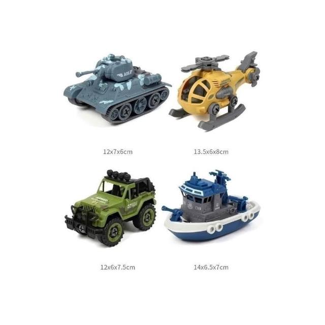 DIY組裝車 4台裝 鎖螺絲玩具車 拆卸組裝車 益智玩具 兒童玩具 消防車 工程車 挖土機 螺絲起子 砂石車 警車 飛機