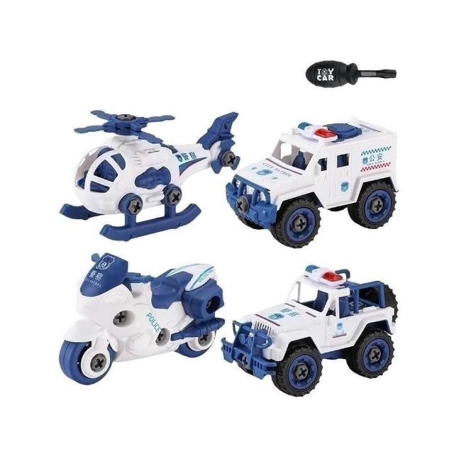 DIY組裝車 4台裝 鎖螺絲玩具車 拆卸組裝車 益智玩具 兒童玩具 消防車 工程車 挖土機 螺絲起子 砂石車 警車 飛機