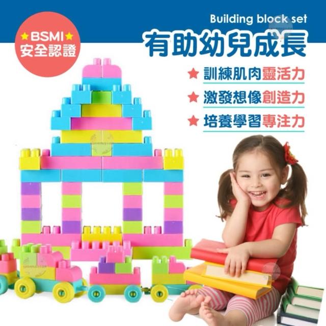 兒童積木組 盒裝積木 大容量200顆積木 馬卡龍色積木 組裝益智玩具 早教啟蒙拼圖 積木收納盒 火車積木