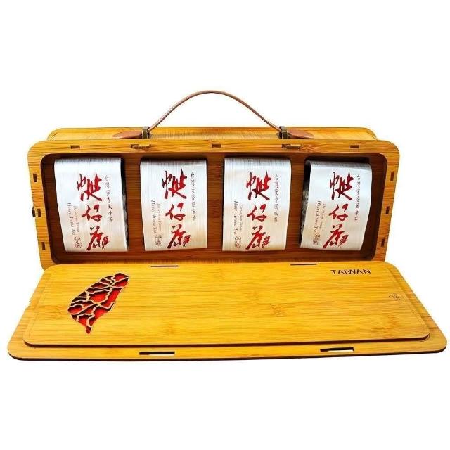 龍源茶品寶島台灣竹紋手提箱禮盒4入組-杉林溪蜒仔茶/阿里山花郁甘露/華崗茶梨山高冷烏龍/杉林溪花韻烏龍茶-任選附提袋