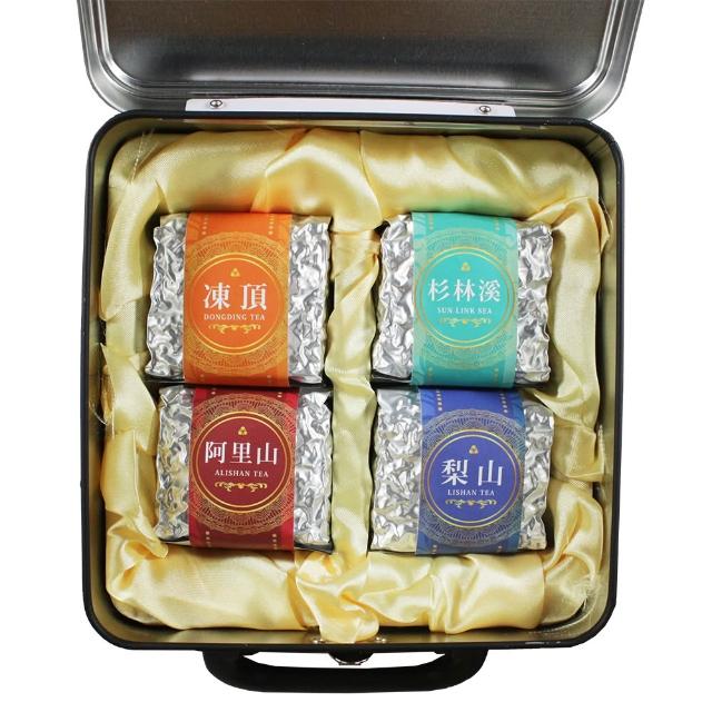 龍源茶品國際精品藍帶鍍金典藏手提鐵盒茶葉禮盒 50gx4包入組 台灣經典四大山頭/頂級禮盒 烏龍高山茶